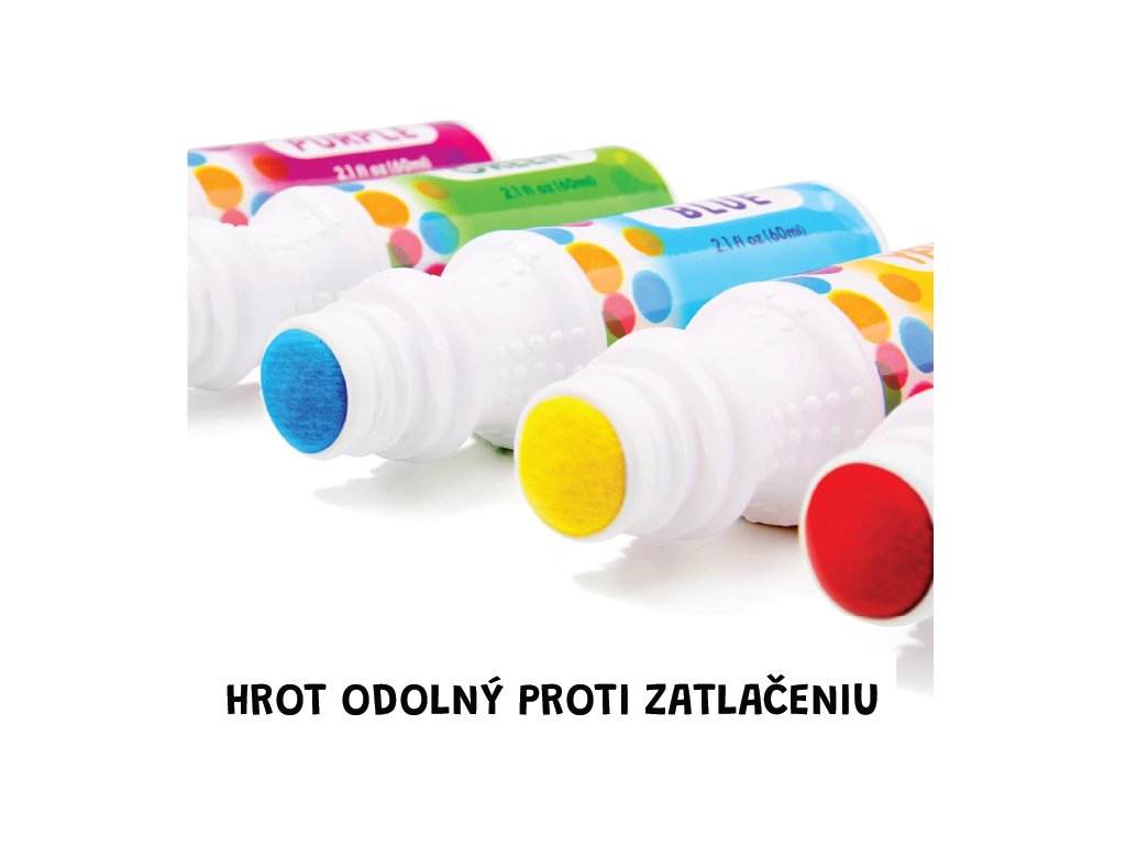 V balení najdete celkem 8 barevných odstínů. Barvy jsou omyvatelné, netoxické a bezpečné. Můžete je vzít i na dovolenou či výlet, protože netečou a dají se použít kdykoli. Součástí balení je také 10 pracovních listů na malování, které dětem dají nové možnosti na kreativní tvoření. Pokud byste měli málo, můžete dětem vytisknout zdarma vytisknout naše předlohy.