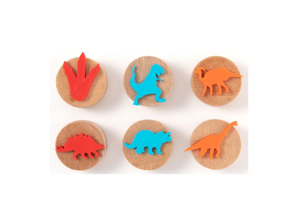 Sada dřevěných razítek Dinosauři přenese děti do prehistorického světa plného fantazie a tvoření. Razítkování je pro malé děti přirozenou a hravou cestou, jak rozvíjet jemnou motoriku, koordinaci ruky a oka i představivost. Každý otisk otevírá prostor pro nové nápady, příběhy a objevování.