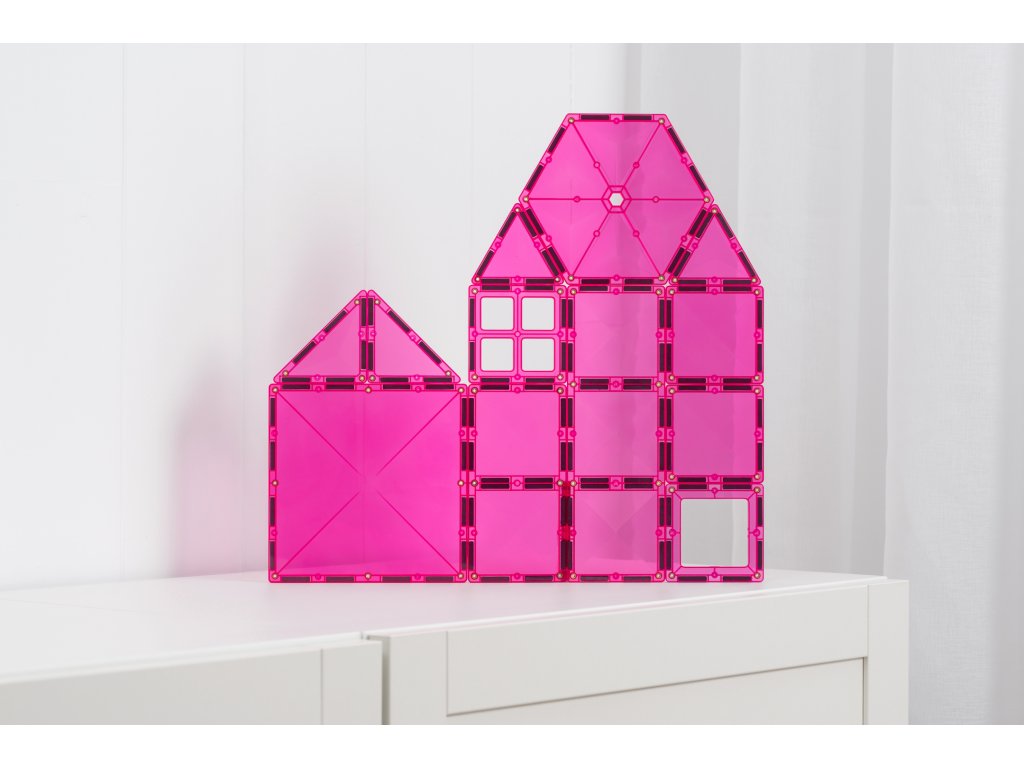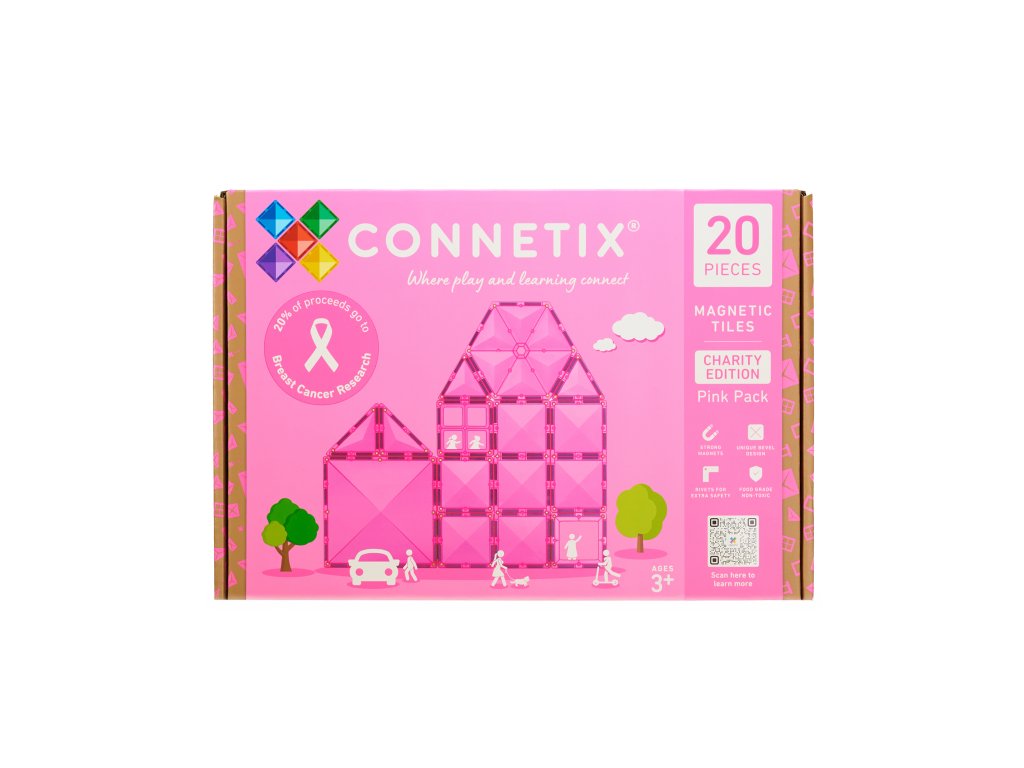 Sada obsahuje 20 magnetických dílků v růžovém provedení a nabízí prostor pro volnou a ničím neomezenou hru. Děti mohou stavět domy, květiny, symbolické stuhy i vlastní fantazijní světy, rozvíjet kreativitu i představivost a zároveň si přirozeně osvojovat prostorové myšlení. Součástí balení je pestrý výběr tvarů – čtverce a obdélníky různých velikostí, tři typy trojúhelníků, šestiúhelník, dveře i okno. Díky plné kompatibilitě s ostatními sadami CONNETIX lze tuto edici snadno zapojit do stávajících kolekcí a vytvořit ještě větší a nápaditější stavby. Tento kompaktní, ale promyšleně sestavený set je skvělým dárkem, který spojuje radost z hry s dobrým skutkem.