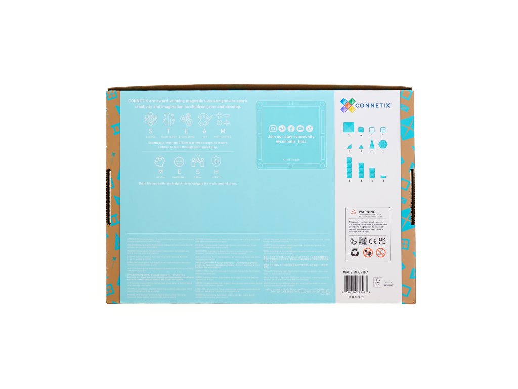 Connetix Tiles je vzdělávací stavebnice navržená tak, aby děti provázela celými roky jejich vývoje. Díky silným magnetům a charakteristickému zkosenému designu jednotlivých dílků vznikají pevné a stabilní stavby s jedinečným efektem průsvitu světla. Každá dlaždice je spojena ultrazvukovým svařováním a kovovými nýty a vyrobena z odolného, netoxického ABS plastu bez BPA a ftalátů. Bezpečnost a kvalita jsou klíčem – sada je vhodná pro děti od 3 let.