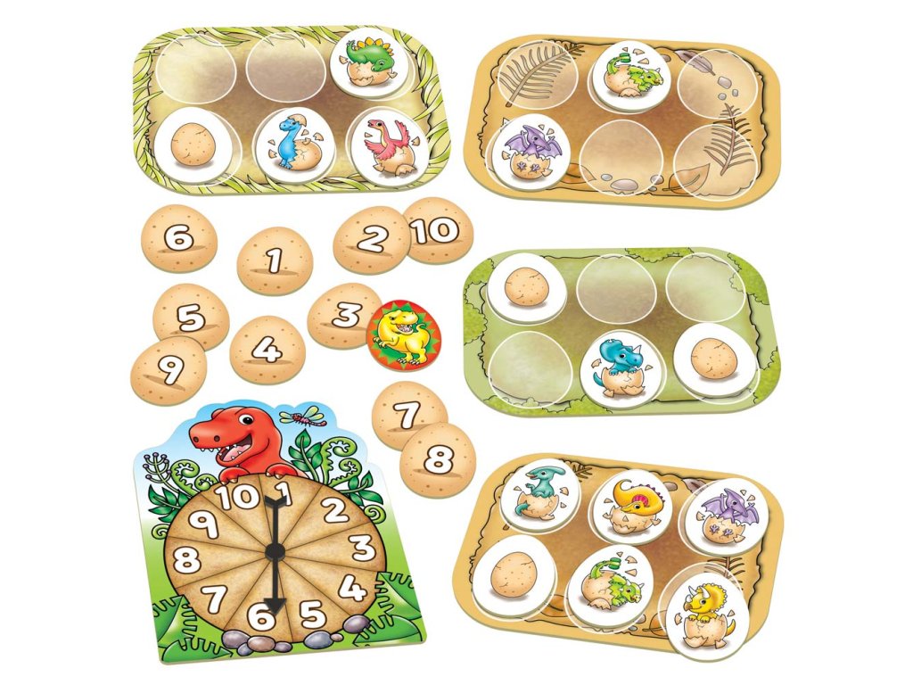 Hra pro milovníky dinosaurů, při které se děti zábavnou formou učí počítat, rozpoznávat čísla a nechybí ani přátelské soutěžení. Hráči roztočí spinner a párují vajíčka, aby se vylíhly roztomilé dinosauří mláďátka. Předhánějí se v co největším počtu vylíhnutých dinosaurů, ale zároveň musí dávat pozor na divokou kartu T-Rexe. Protože ten vyžaduje vrácení vajec zpátky.