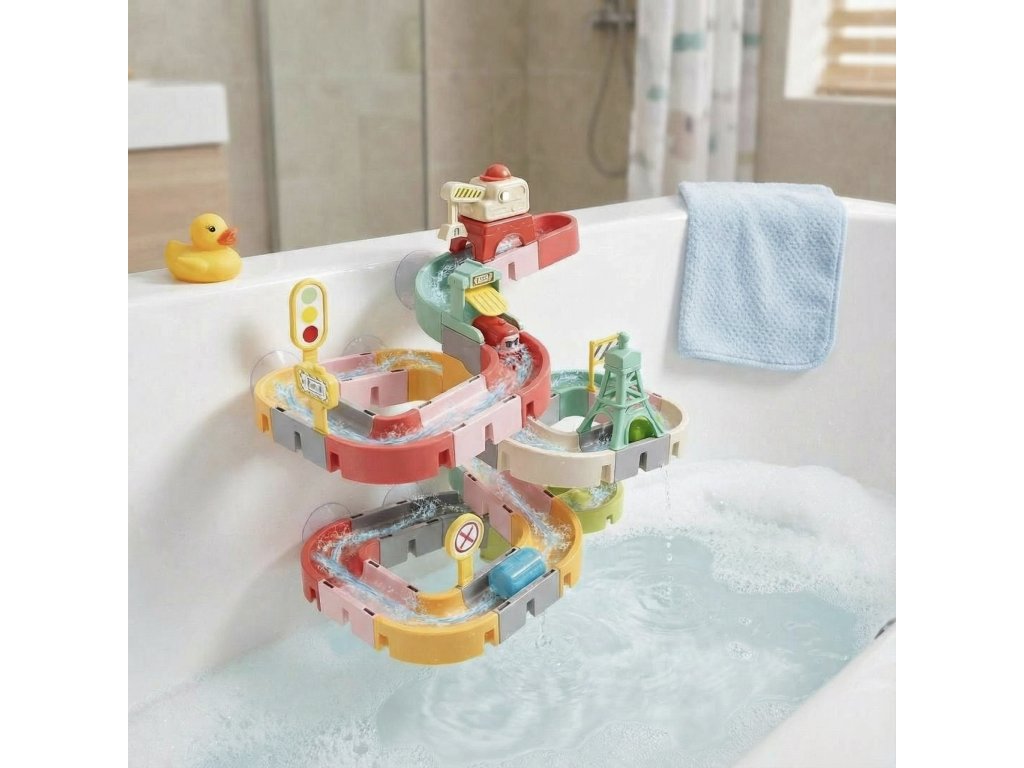 Objevte nekonečné možnosti vodní hry. DIY kuličková dráha do vody se 47 díly přináší dětem prostor pro tvoření vlastních tratí, experimentování s pohybem kuliček a radost z objevování. Každé koupání nebo hra se senzorickou miskou se tak promění v malé dobrodružství plné proudů, zatáček a překvapení.