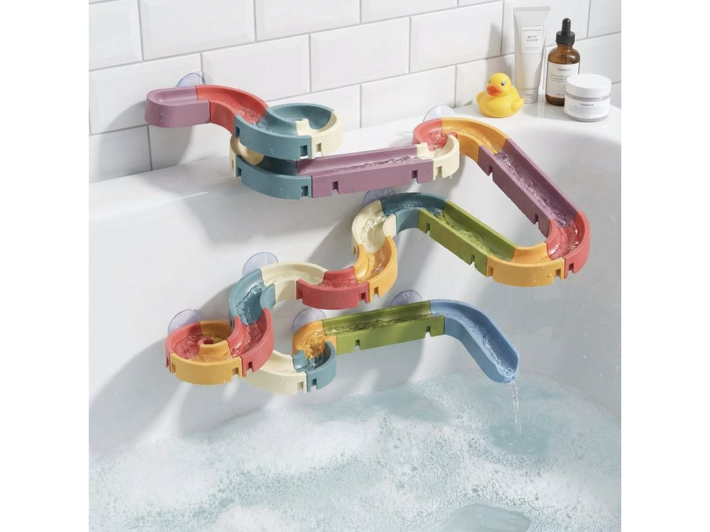 DIY Skluzavka do vody se 48 díly nabízí dětem prostor pro tvoření vlastních drah, experimentování s pohybem a objevování nových herních kombinací. Každé koupání se tak může proměnit v malé vodní dobrodružství plné zatáček, tunelů a překvapení.