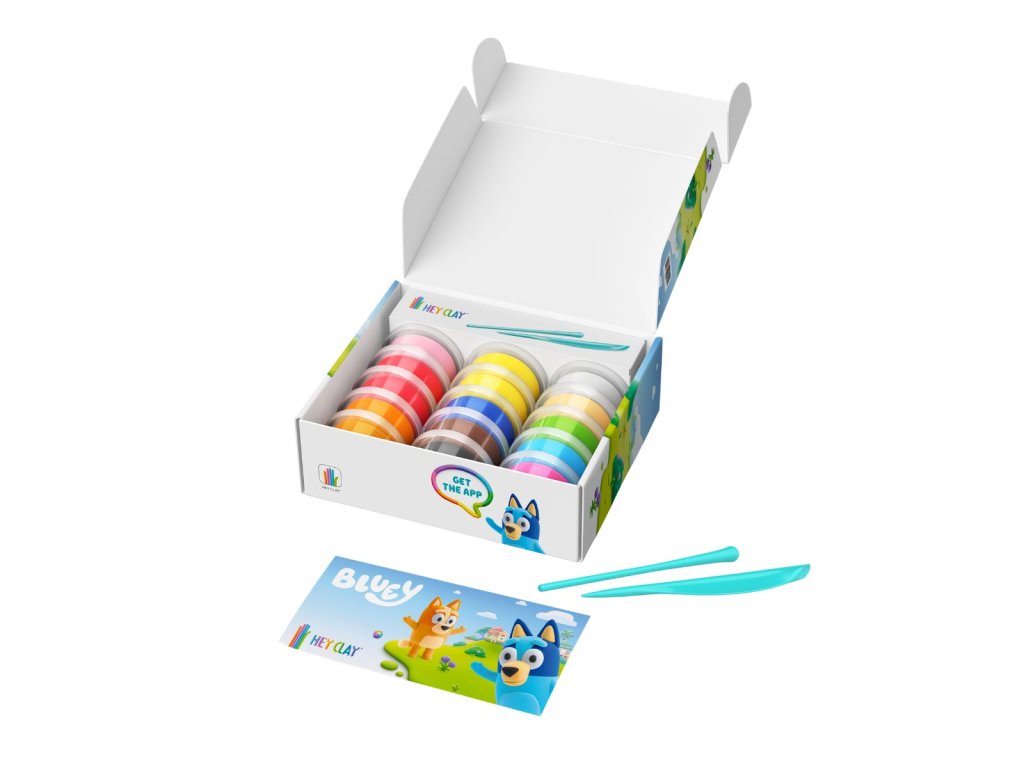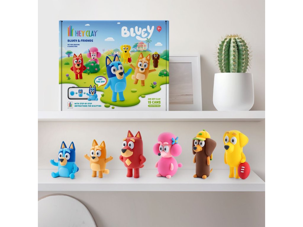 Tato modelína vás dostane! Můžete z ní vytvořit postavičky z oblíbeného seriálu Bluey - kromě Bluey třeba i tvůrčí Bingo, sportovního Luckyho, vynalézavého Snickerse, stylovou Coco a chytrého Rustyho. Modelína Hey Clay nešpiní, nedělá nepořádek a má krásné barvy. Pokud necháte po vymodelování své výtvory na vzduchu, hmota zatvrdne a vzniknout vám postavičky, které můžete využít na hraní. Pokud si postavičky nechcete nechat, můžete modelínu Hey Clay uložit zpátky do kelímku a využít na další tvoření.