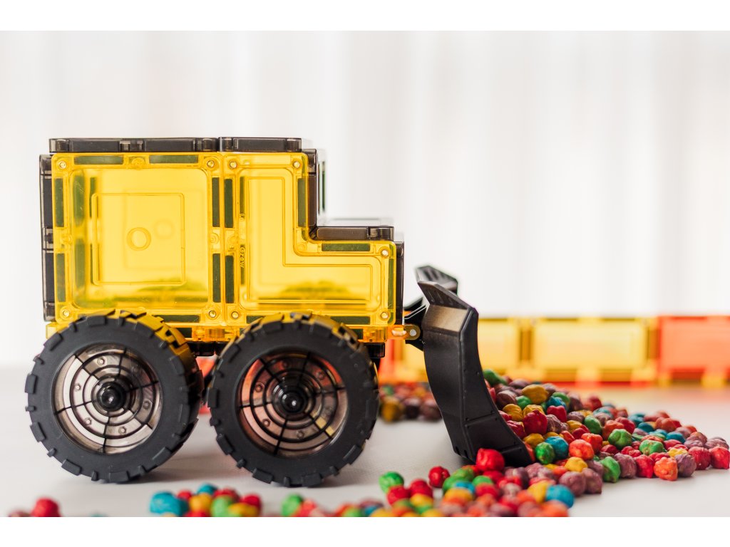 - magnetická stavebnice se speciálními díly pro stavbu sklápeče, buldozeru a dalších vozů