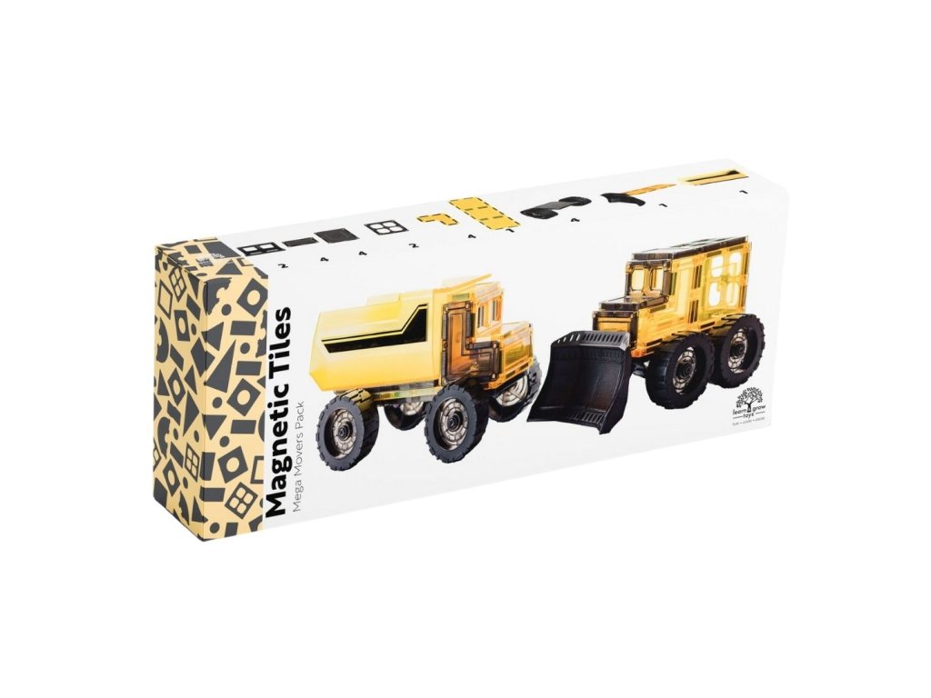 Nová zábava je tady! Připravte se na pořádnou hru díky unikátní sadě magnetické stavebnice od Learn & Grow. Set Mega Mover Pack obsahuje robustní sklápěč a buldozer s patentovanými zajišťovacími kolíky na základně Mega Mover Base 3x1. Sada spojuje oblíbené prvky magnetické stavebnice a k tomu obsahuje exlusivní díly kapoty a dlaždice ve tvaru L. V kombinaci s odolnou nápravou s nadrozměrnými gumovými koly a základnou Mega Mover Base 3x1 jsou tyto ultra pevné dlaždice navrženy tak, aby zvládly ty největší úkoly a nejdivočejší fantazii. Magnetická stavebnice Mega Mover Pack se tak hodí pro hrátky doma, ale můžete tvořit i venkovní stavební zóny.