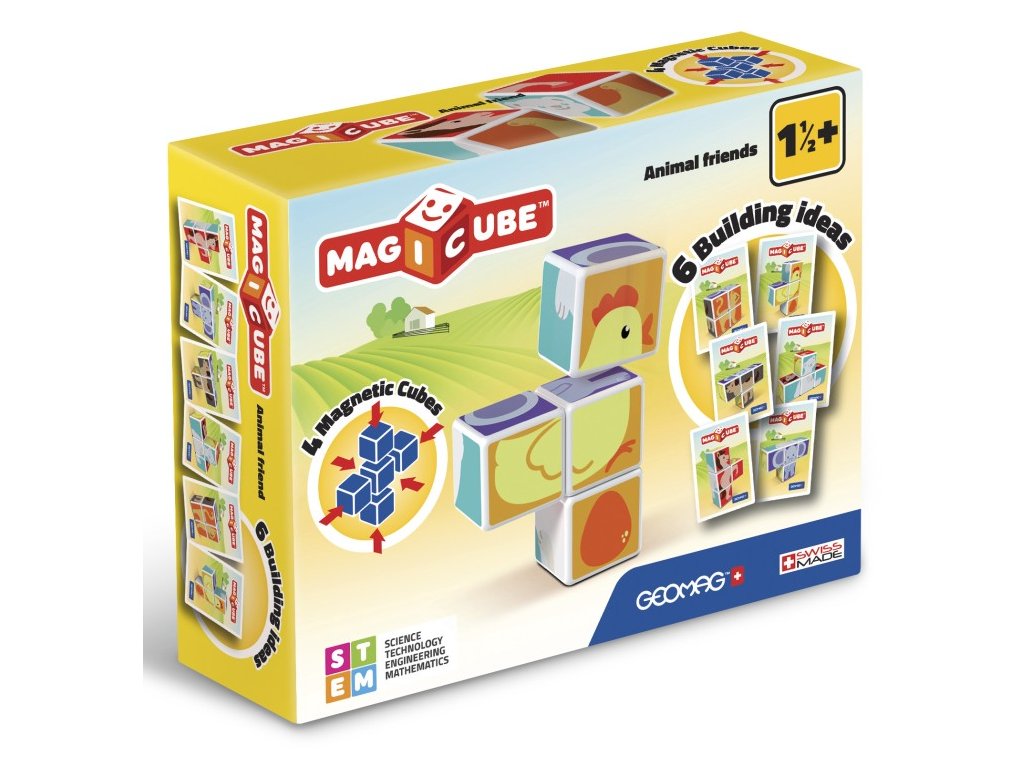 Magicube Animal Friends jsou unikátní magnetické kostky, se kterými si postavíte hned několik zvířátek. Děti skládají oblíbené zvířátka pomocí jednoduchého spojování a otáčení. Při hraní rozvíjí jemnou motoriku, logické myšlení a kreativitu. Tato zábavná a vzdělávací hračka pro nejmenší zároveň dětem ukáže, jak funguje magnet a stavění z magnetické stavebnice. Takže pak můžete snáze přejít i na klasické magnetické stavebnice.