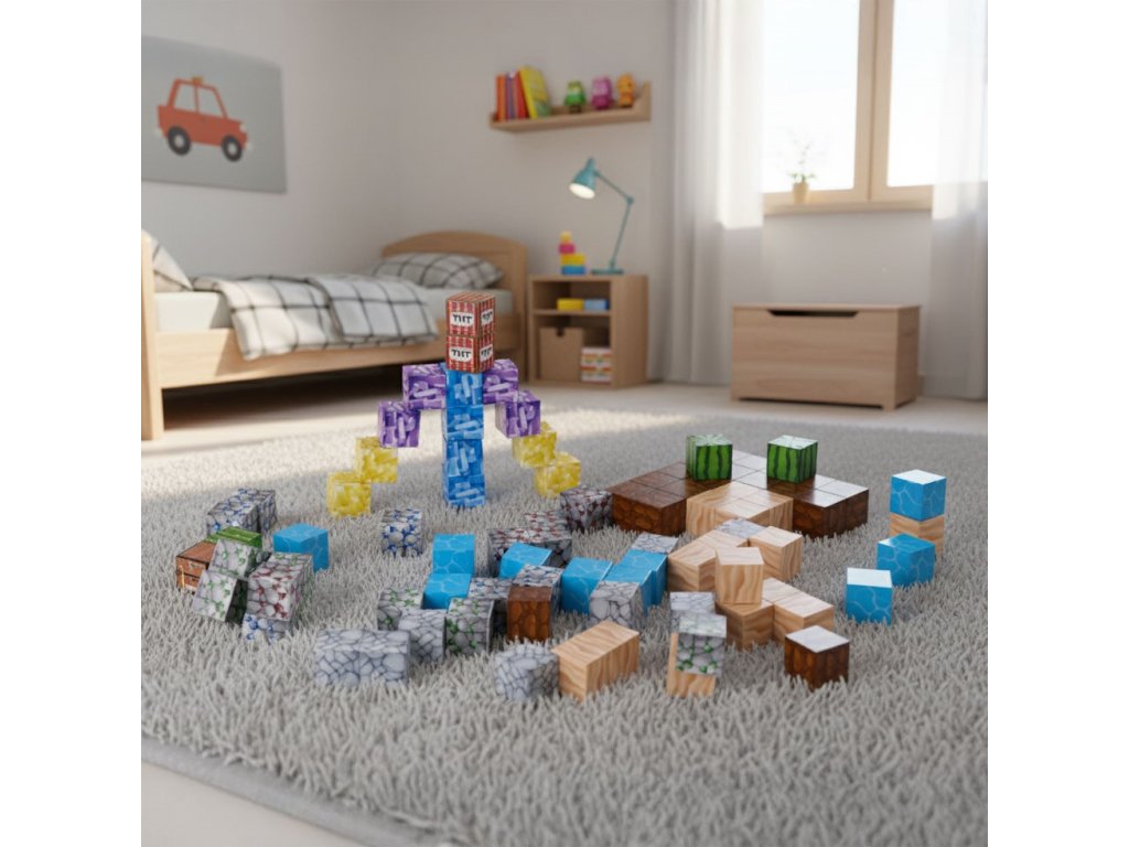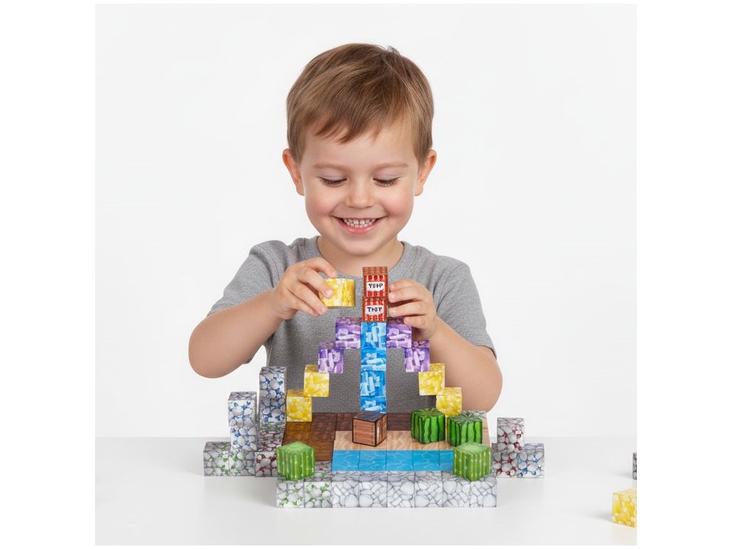 Stavění z menších magnetických kostek je jiné než u klasických magnetických dílků. Děti skládají jednotlivé „pixely“ k sobě a vytvářejí barevné obrazce nebo 3D modely podobné světu počítačových her. Silné magnety zajišťují stabilitu staveb a snadné spojování. Tato magnetická stavebnice je vhodná pro děti, které rády tvoří detaily, plánují vlastní projekty a baví je konstrukční hry. Skvěle rozvíjí prostorovou představivost, jemnou motoriku i logické myšlení. Vhodné pro děti od 3 let.