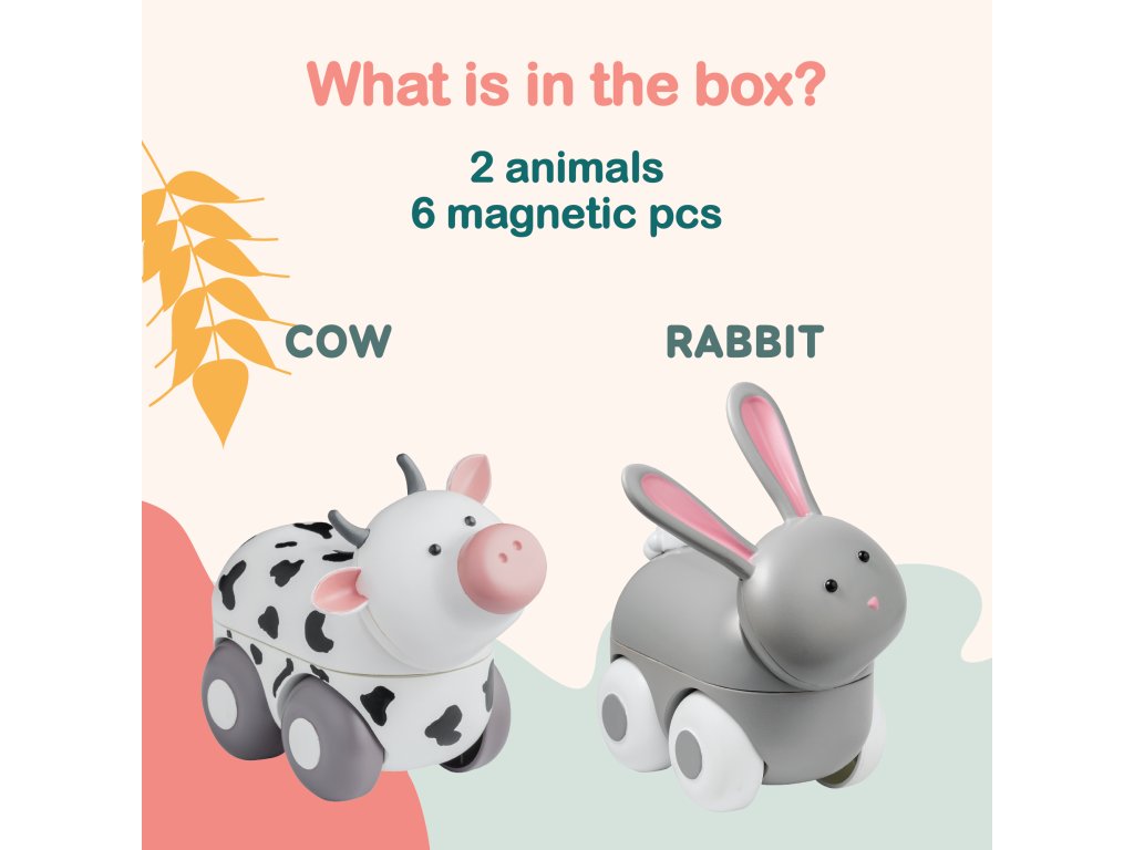 - 6dílná sada magnetických zvířátek Magimals Wheely (zajíc, kráva)
