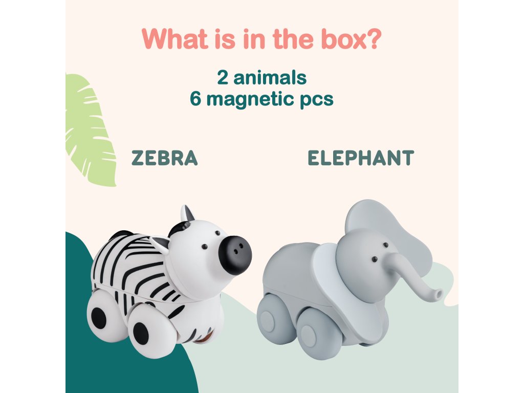- 6dílná sada magnetických zvířátek Magimals Wheely (zebra a slon)