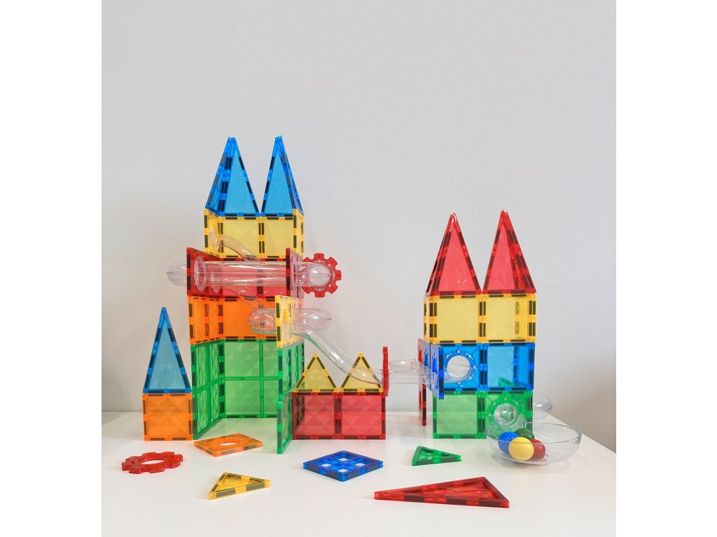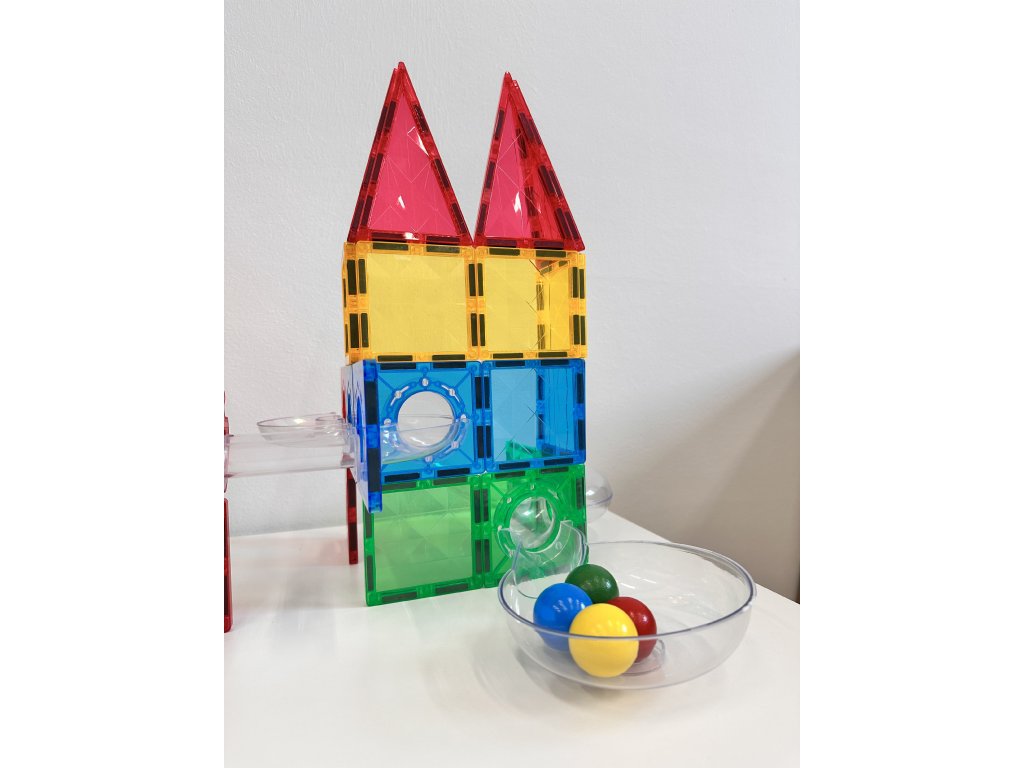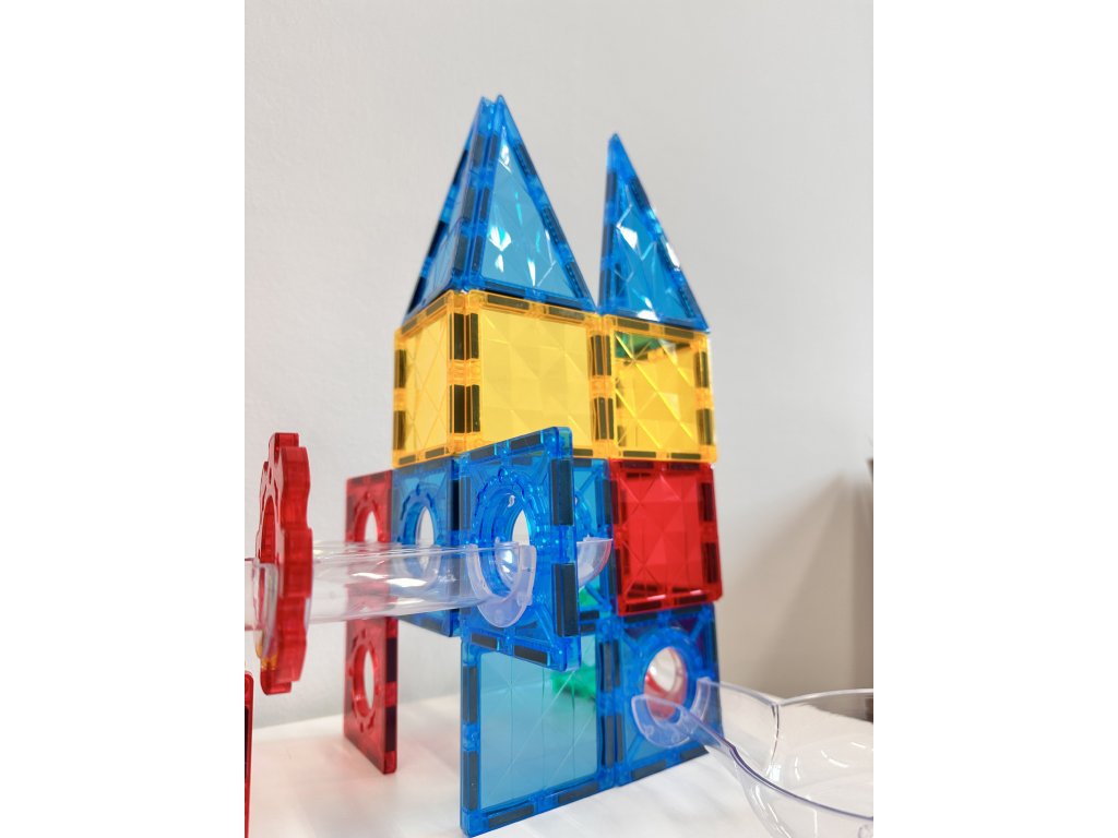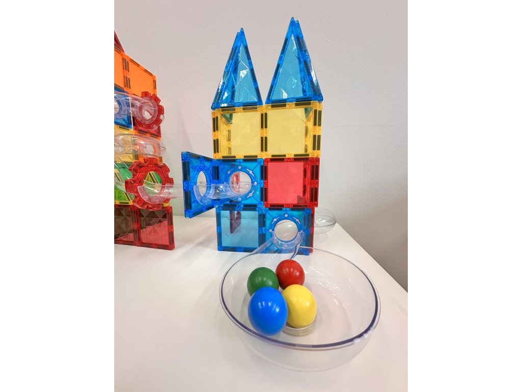 MAMIS Magnetická stavebnice s kuličkodráhou je unikátní sada, která spojuje klasickou magnetickou stavebnici a kuličkodráhu v jednom balení. Díky 145 dílům nabízí nekonečné možnosti stavění – děti mohou postavit domečky, věže, mosty i složité dráhy pro kuličky, které se rozjedou hned, jakmile je pustí.