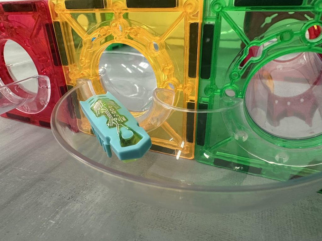 - kompatibilní s magnetickými stavebnicemi – vhodné na dráhy z klasických dílů i z magnetické kuličkodráhy