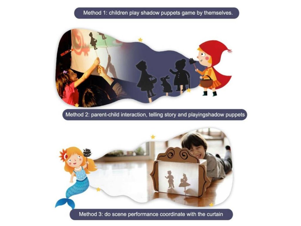 Hra je vhodná pro rodiče s dětmi, ale starší zvládnou zahrát pohádku i sami. Stínové divadlo pomáhá zvyšovat dětskou kreativitu, hravost a také rozvíjí jazykové schopnosti. Vhodné pro děti od 3 let.