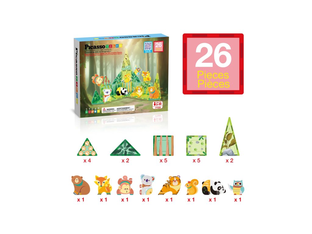 Picasso Tiles - Magnetická stavebnice Lesní zvířata (26 ks)