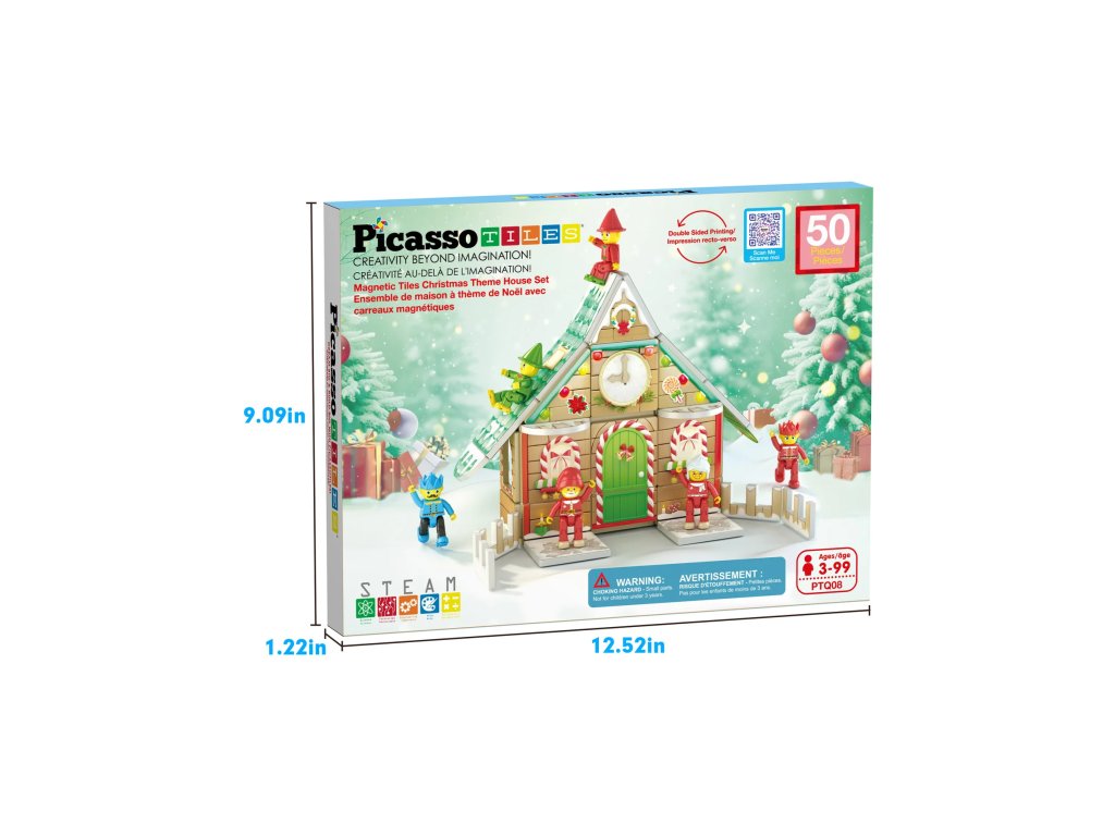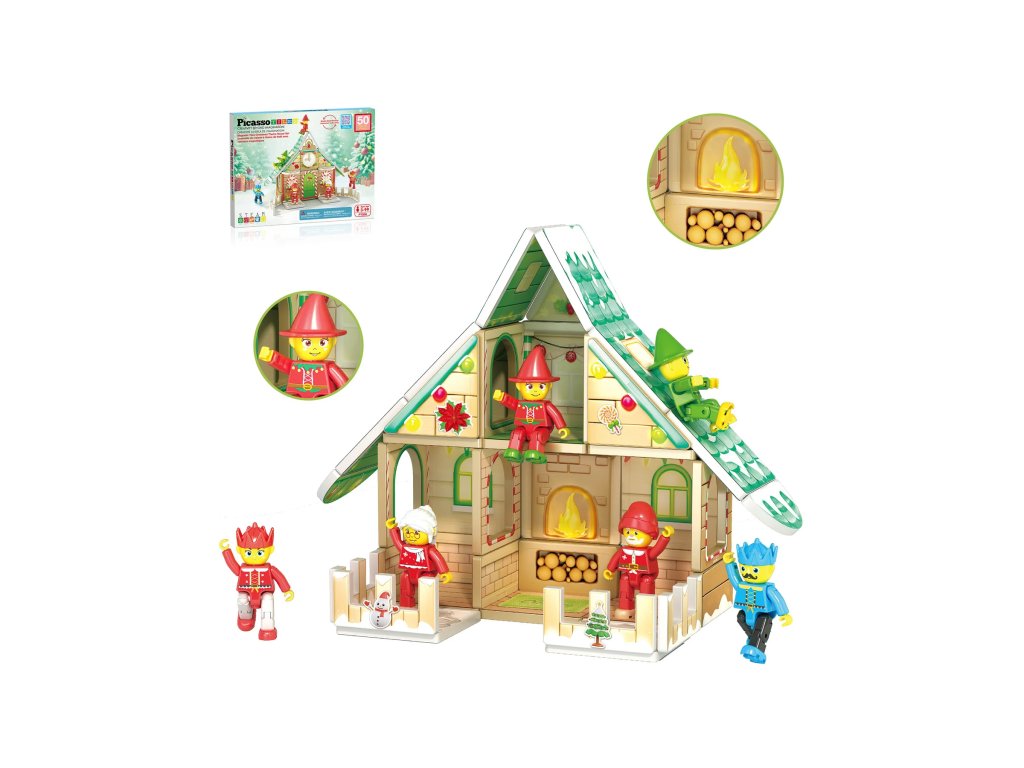 Picasso Tiles Magnetická stavebnice – Vánoční chaloupka s figurkami (50 ks)