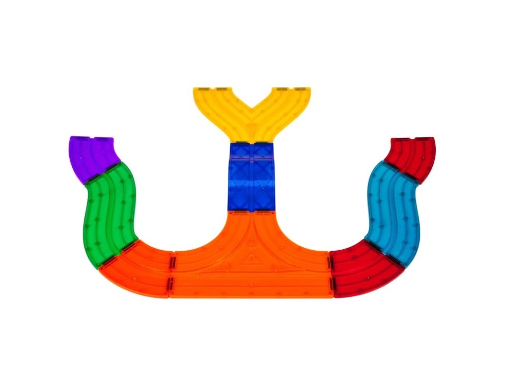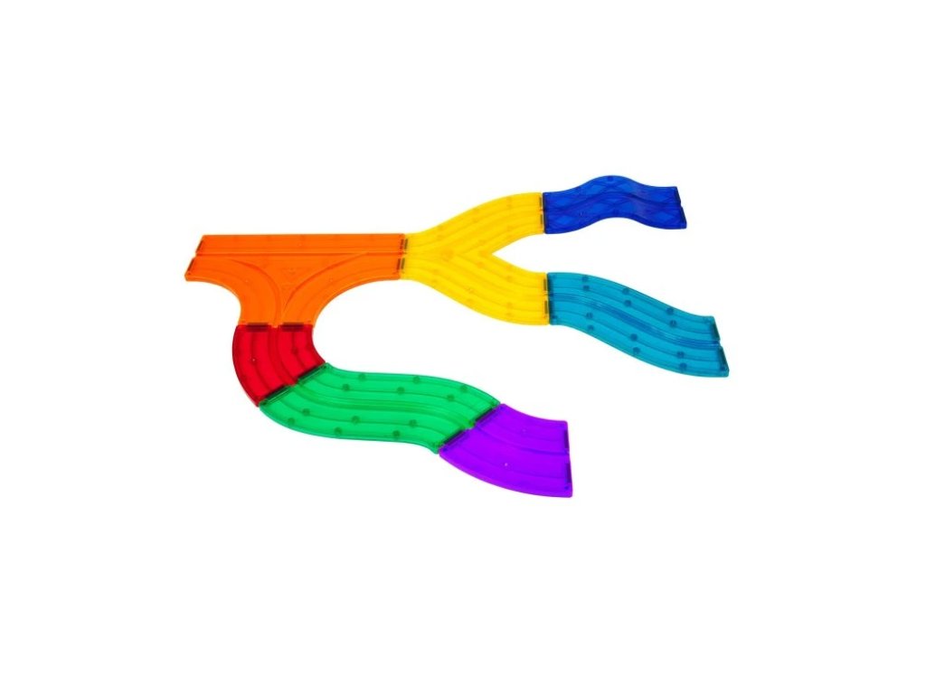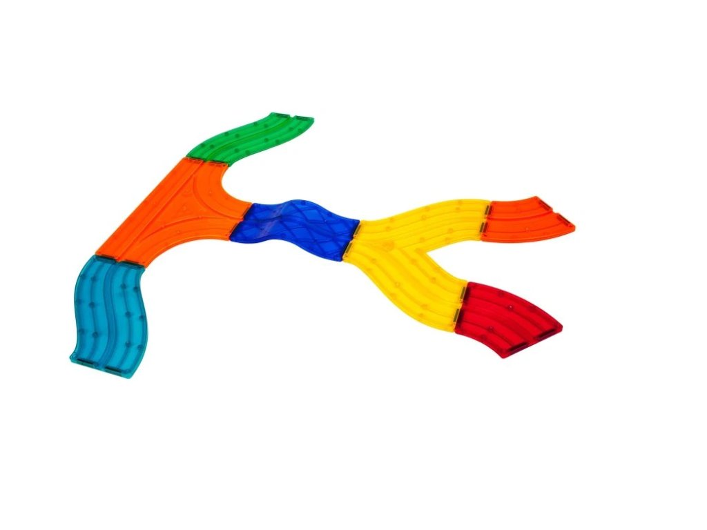 Doplňující sada pro magnetické autodráhy, ve které najdete netradiční díly jako zpomalovač, rozcestí, zatáčky a další. Můžete propojit s magnetickými dráhami od Picasso Tiles, Coblo, Cleverclixx, MiDeer či MNTL (všechny najdete zde). Autíčko není součástí balení, ale můžete dokoupit další i zvlášt. Vhodné pro děti od 3 let.