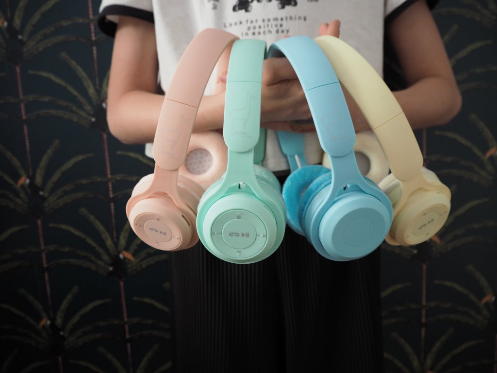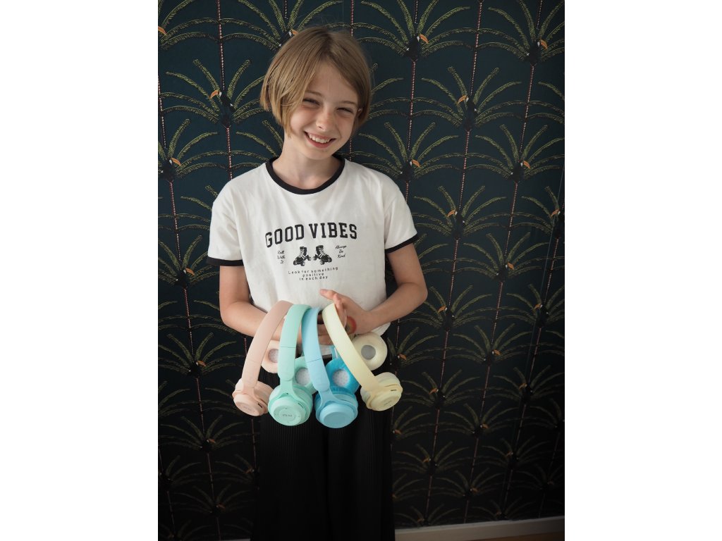 Štýlové bezdrôtové slúchadlá pre deti v ružovej pastelovej farbe. Slúchadlá majú krásny moderný dizajn s mäkkým gumovým povrchom, ktorý umožňuje počúvať hudbu a slová jasne a čisto. Hlasitosť je obmedzená na maximálne 85 dB, aby si deti nepoškodili sluch. Slúchadlá sa dajú ľahko zložiť a ich súčasťou je aj praktické vrecko, do ktorého môžete slúchadlá kedykoľvek uložiť. Deti si ich tak môžu vziať so sebou na dovolenku a do batohu.
