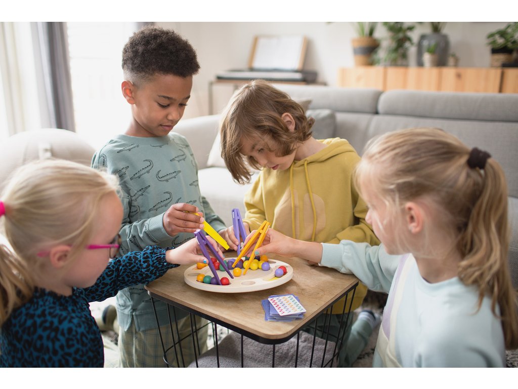 Zábavná hra pre 2-4 hráčov od 6 rokov na precvičenie jemnej motoriky a koordinácie. Farebné loptičky sa kotúľajú všetkými smermi! A úlohou hráčov je zbierať loptičky vo farbách, ktoré zodpovedajú vzorom na karte. Chyťte ich čo najrýchlejšie drevenou pinzetou a poskladajte ich v rovnakom poradí ako na cik-cak kartičkách. Rozhodujúca je rýchlosť, ale aj presnosť. Ak chcete vyhrať, je najlepšie najprv získať dvojfarebné guľôčky, pretože majú väčšiu bodovú hodnotu. Hráč, ktorý je najrýchlejší alebo získa najviac bodov v jednom kole, vyhráva kartu. Hru vyhráva hráč, ktorý ako prvý získa 8 kariet. Hra Zigzag získala certifikát Sprievodcu dobrou hrou vo Veľkej Británii - 2023. Vhodná pre deti od 6 rokov.