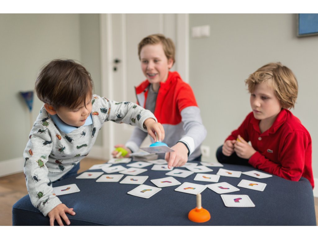 V hre deti používajú malé prísavky, ktoré prinášajú netradičný zážitok. Pri hre si precvičia rýchlosť, postreh, koordináciu oko-ruka a tiež rozpoznávanie pravej a ľavej strany. Karty sú vyrobené z pevného kartónu, aby vydržali nápor prísaviek. Hra je vhodná pre 2-4 hráčov od 4 rokov.