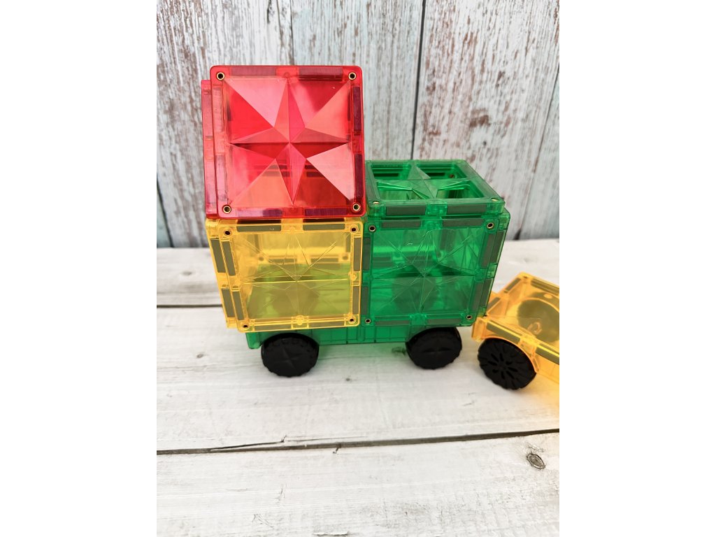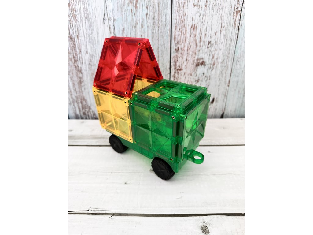 Doplnková súprava k magnetickým stavebniciam, vďaka ktorej si deti môžu postaviť originálne autá a iné vozidlá. Na magnetický podvozok sa dajú ľahko pripojiť rôzne magnetické diely a deti si môžu vytvoriť nákladné autá, autíčka alebo dokonca autobus pre zvieratá. V tomto ohľade sa fantázii medze nekladú. Súprava ponúka ďalší spôsob využitia magnetických stavebníc a je vhodná pre chlapcov aj dievčatá. Je kompatibilná aj s inými typmi magnetických stavebníc (napr. magnetická stavebnica Connetix Tiles, Magna Tiles, MiDeer alebo Coblo magnetické stavebnice).