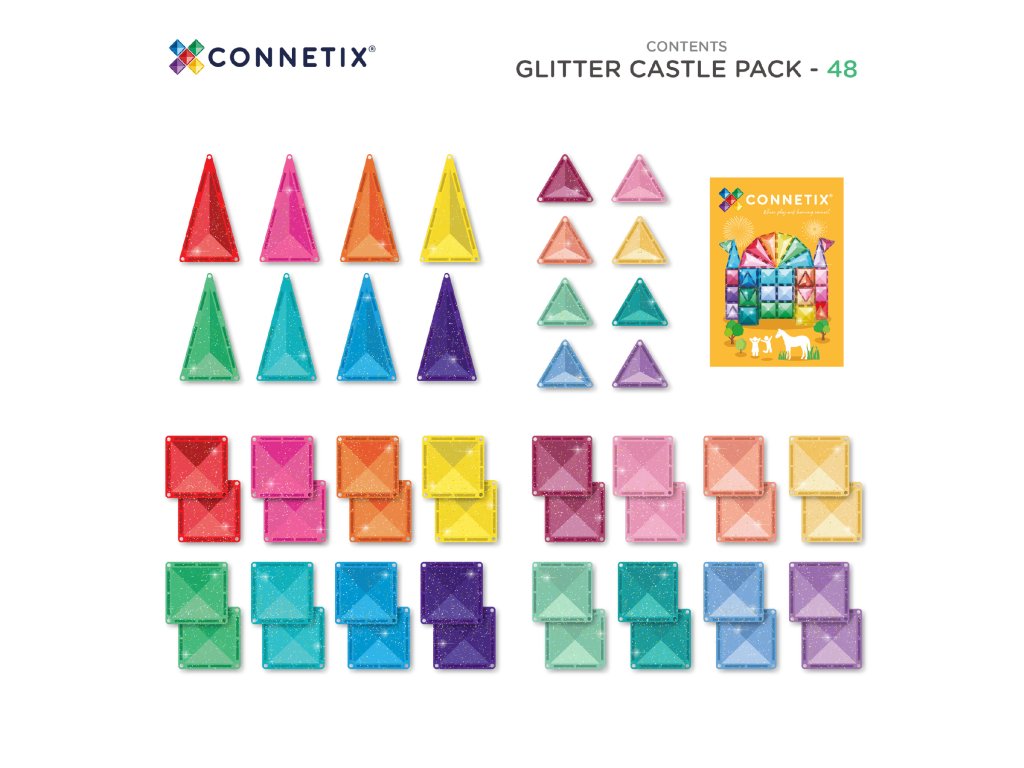 Connetix Tiles Glitter Castle - magnetická stavebnica s trblietkami (48 kusov)