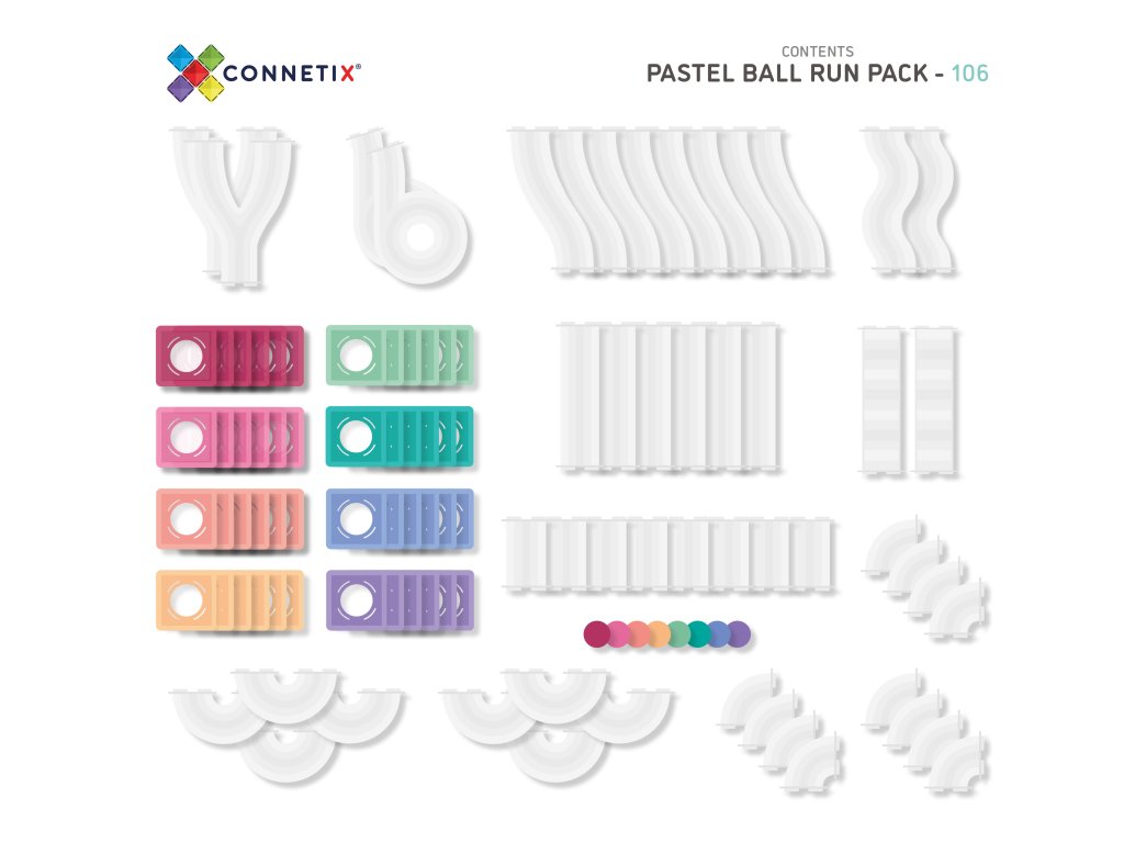 Connetix Tiles Guličkodráha PASTEL (106 ks) + Nano chrobáky (2 ks)
