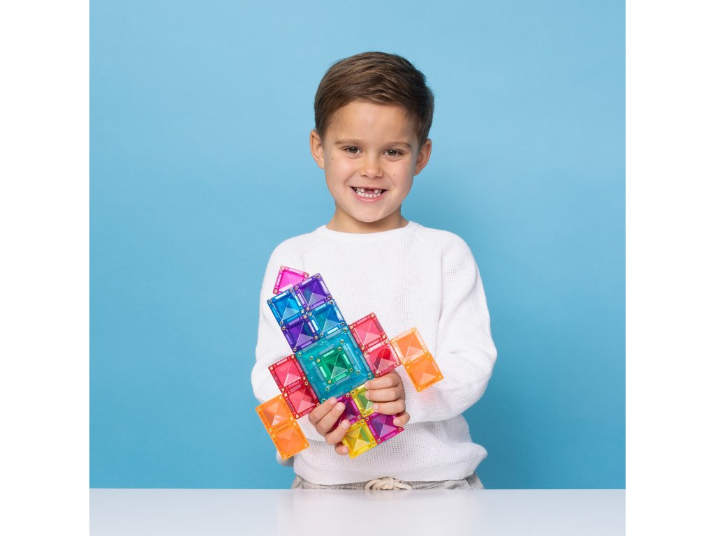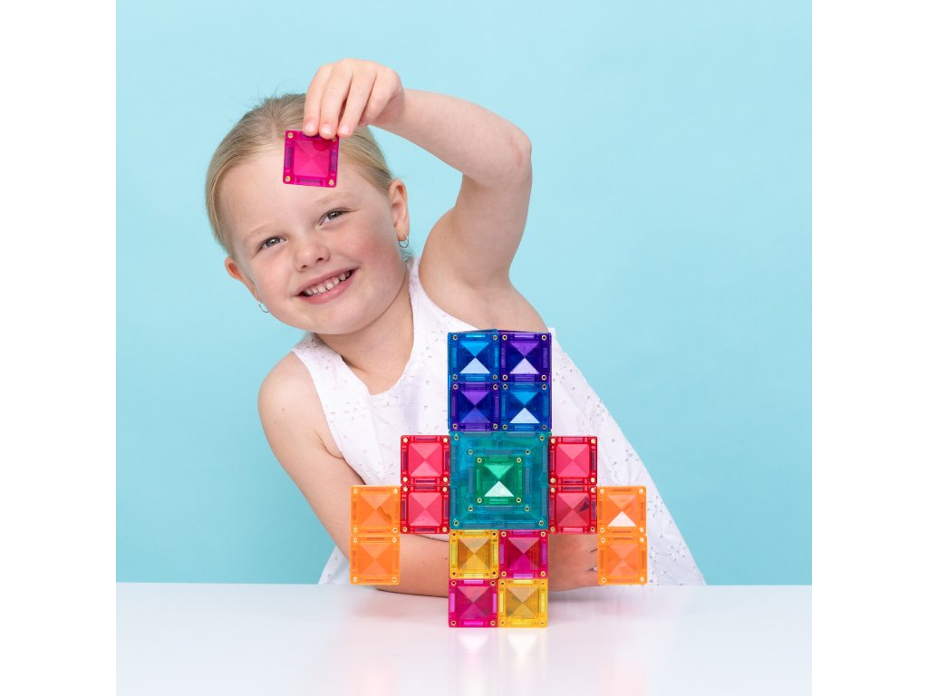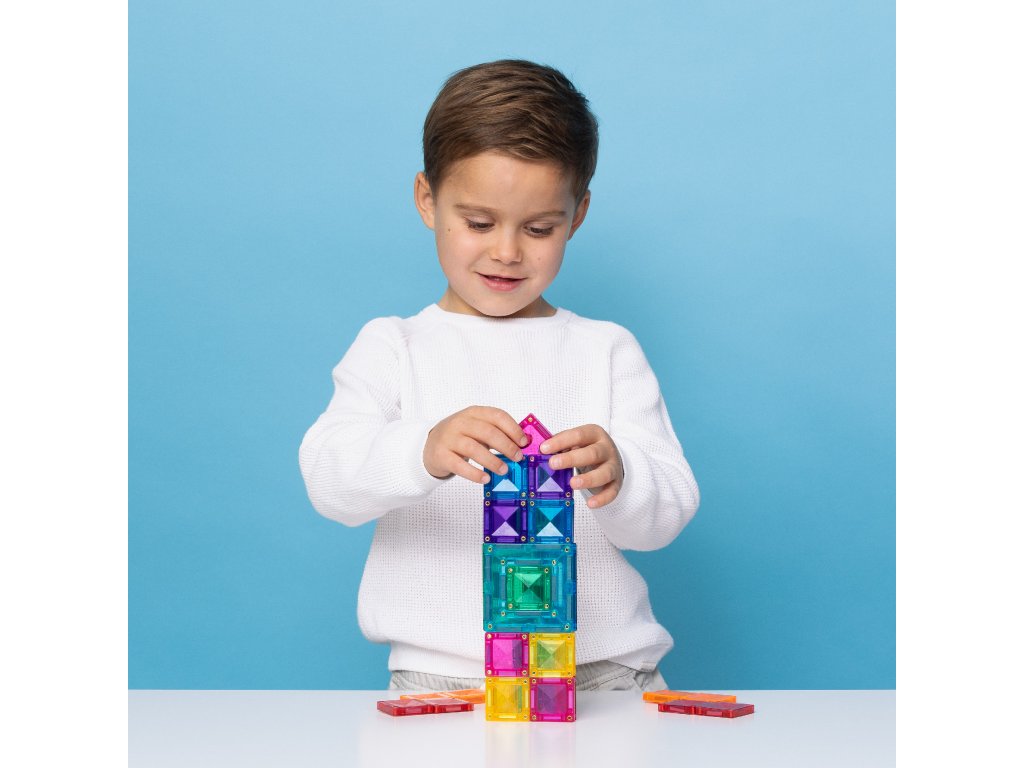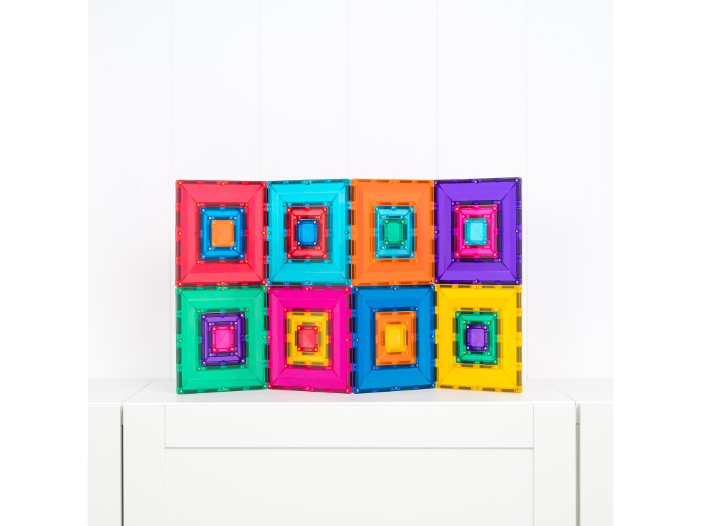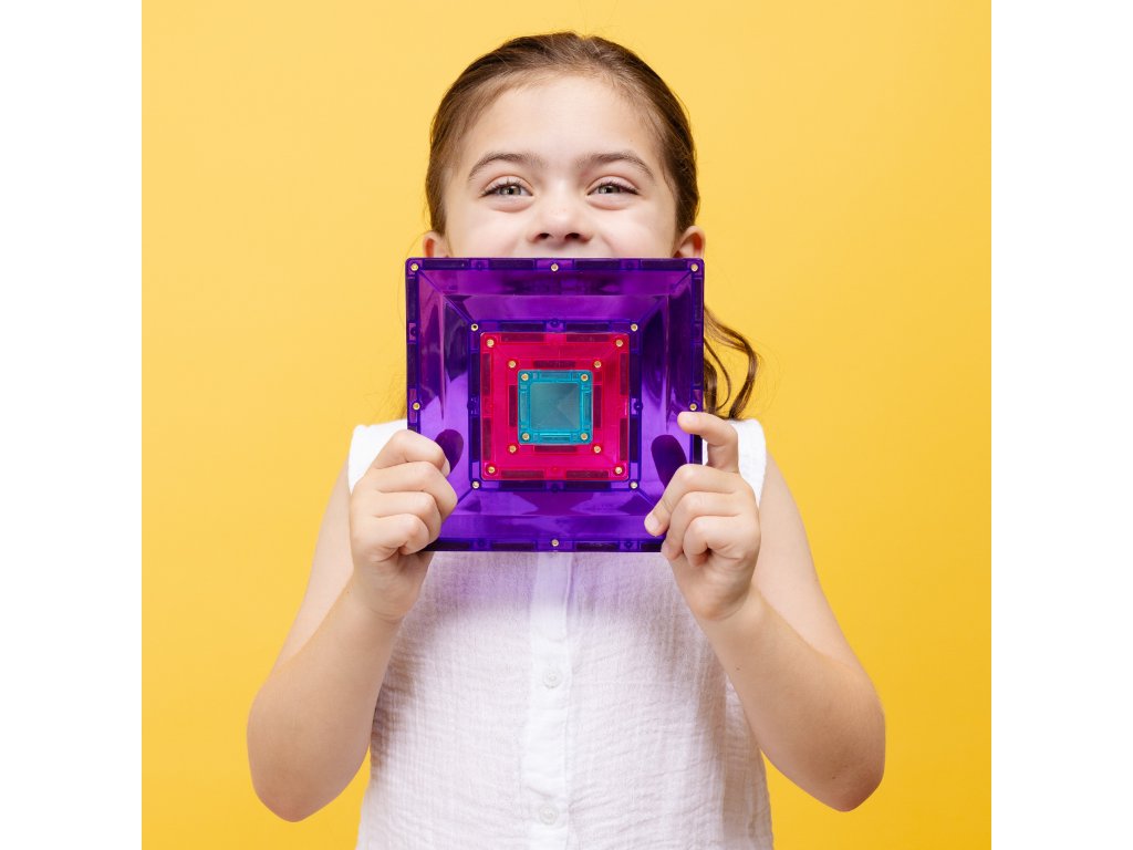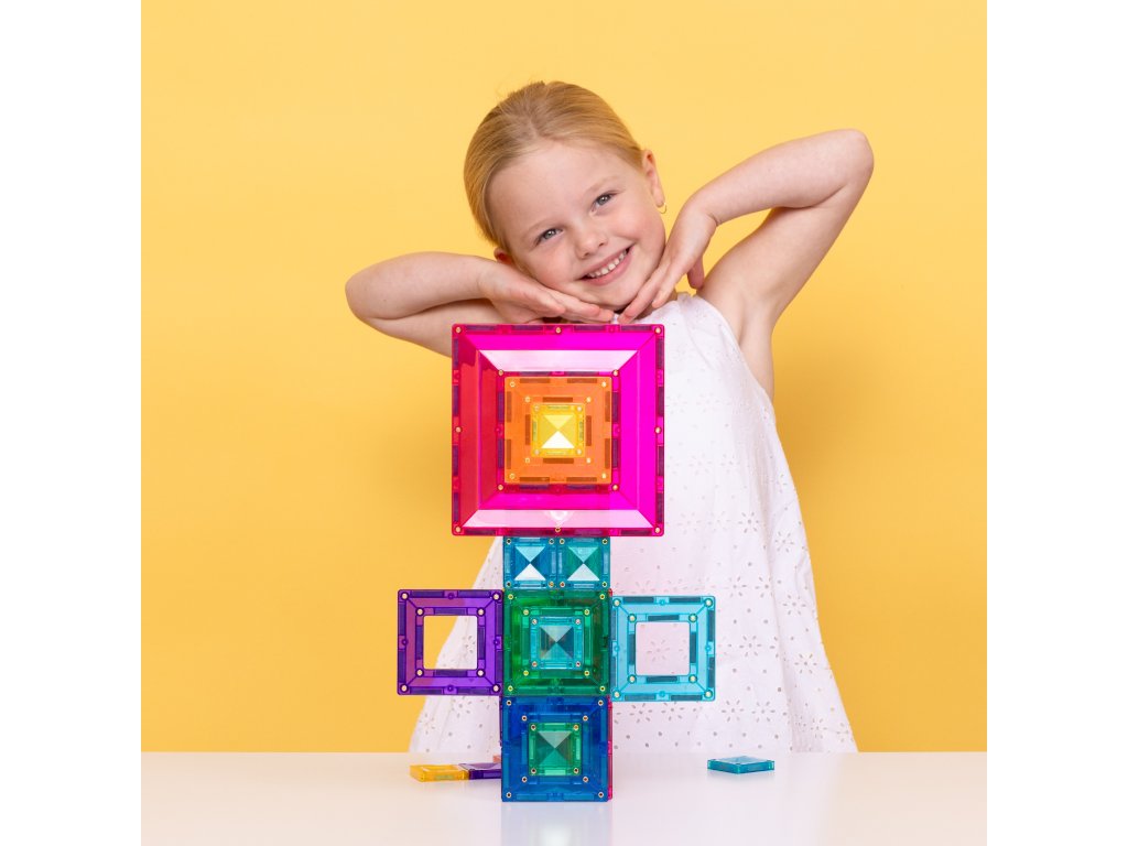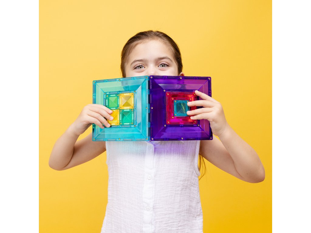 - magnetická stavebnica s jedinečnými štvorčekmi v 8 farbách