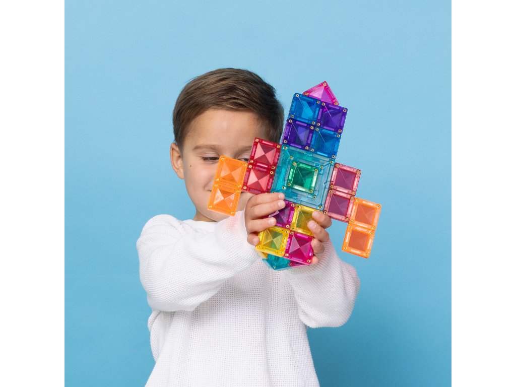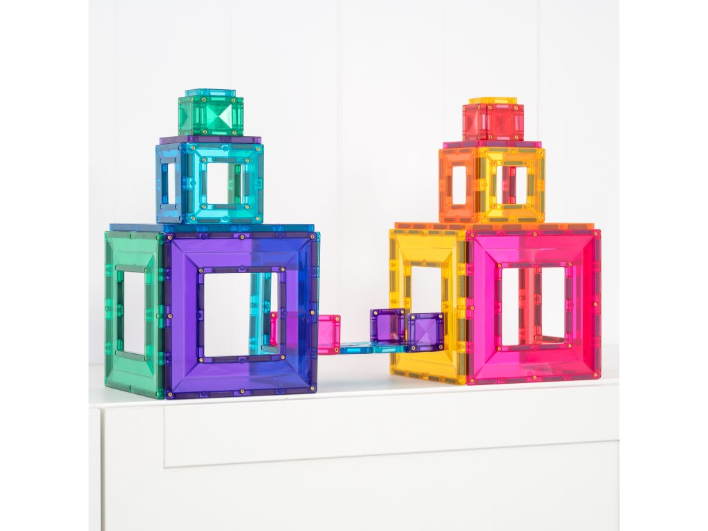 Connetix Tiles použil v tejto súprave úplne nový systém magnetov, ktorý umožňuje stavať dômyselné domy a interiéry, mosty, oblúky, veže, vesmírne lode, zábavné tváre, ako aj kaleidoskopy a tunely. Každý typ štvorcov v súprave má špecifickú úlohu. Mini štvorčeky s otočnými magnetmi (360°) umožňujú stavať vo viacerých smeroch. Stredné a veľké portálové dieliky majú viacero magnetických spojovacích bodov vo vnútri a na okrajoch, takže sú ideálne na pokročilejšie stavby.