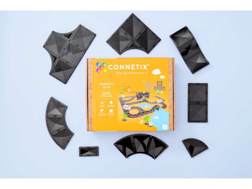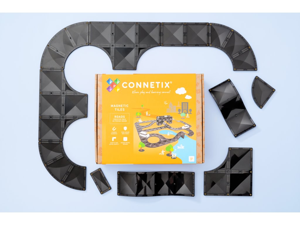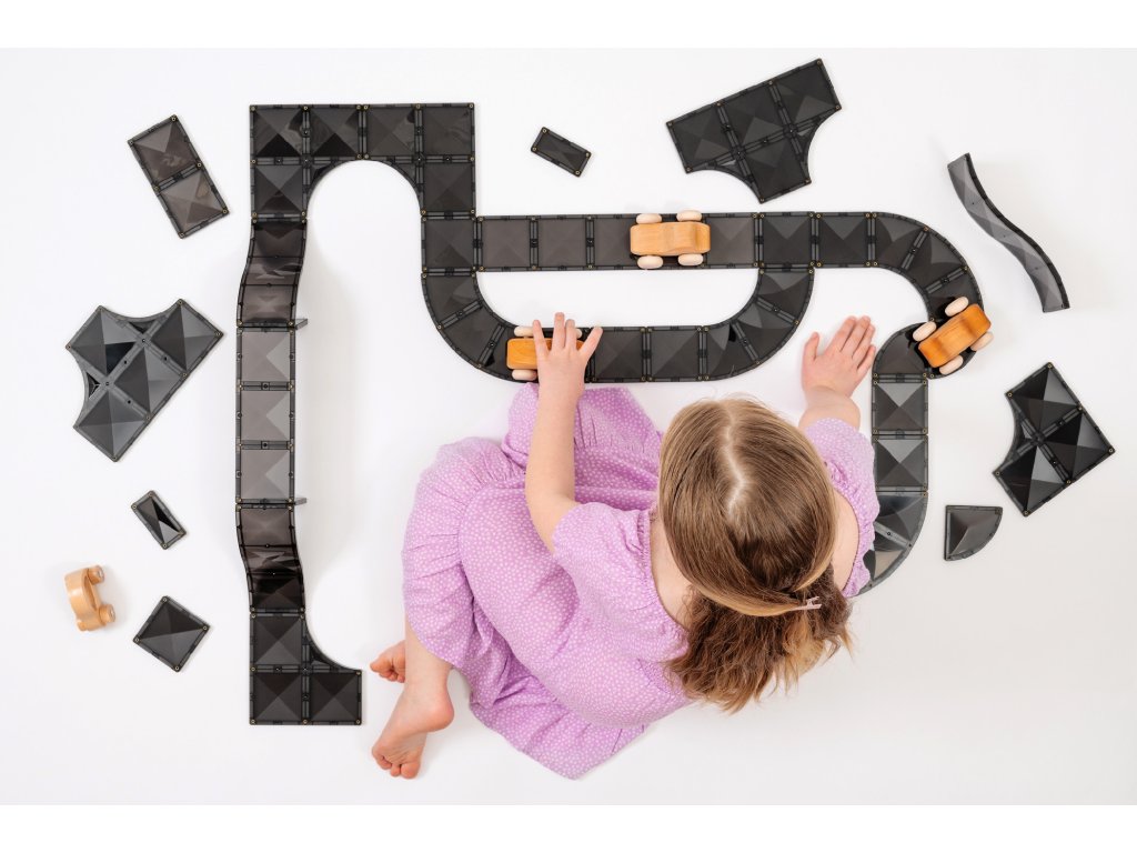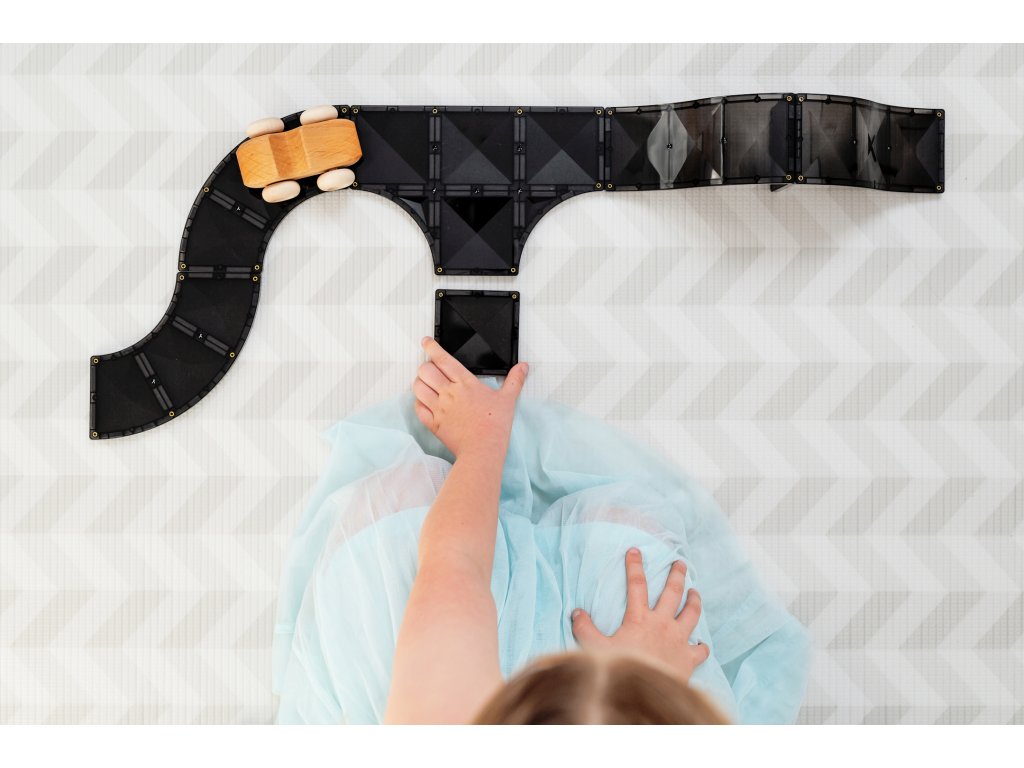 Magnetická stavebnica Connetix Tiles v jedinečnom dizajne, ktorý si zamilujete. V balení nájdete dieliky na stavbu ciest, ktoré sú v čiernej farbe, ako je pri cestách zvykom. Elegantná čierna farba pekne vynikne aj vedľa farebných dielov, s ktorými môžete túto súpravu ľahko kombinovať. Môžete tak postaviť nielen cesty, ale aj celé mestá, letiská, pretekárske dráhy alebo dokonca skatepark. A to nie je všetko. Magnetická stavebnica Connetix Tiles - Roads Creative Pack obsahuje neobvyklé dieliky, ako sú rampy, štvrťkruhy a križovatky, ktoré môžete použiť na ďalšie stavby - napríklad hrady, veže, mosty, bludiská alebo dokonca hádzacie otvory.