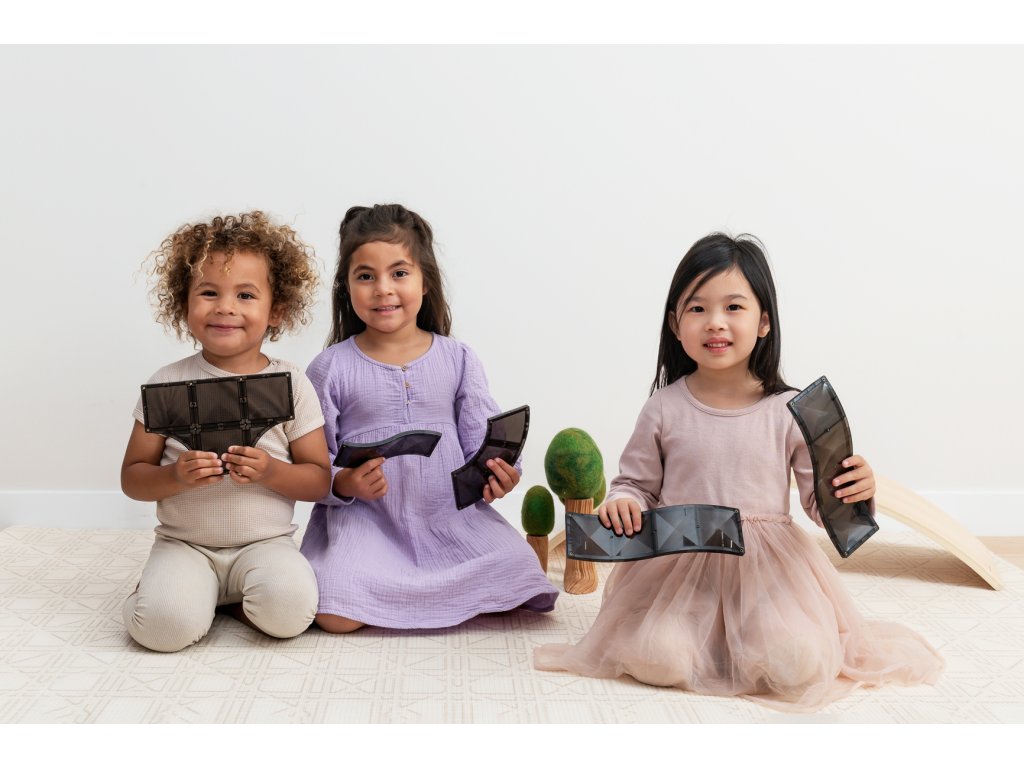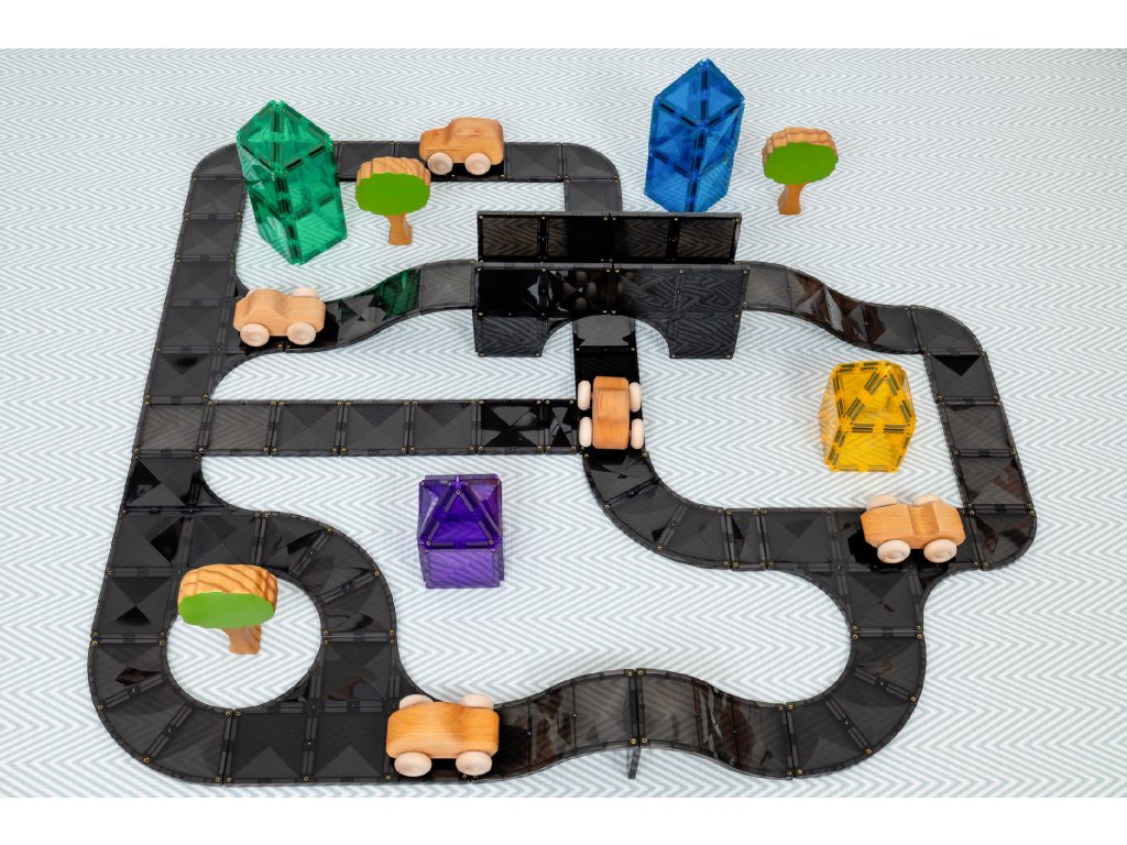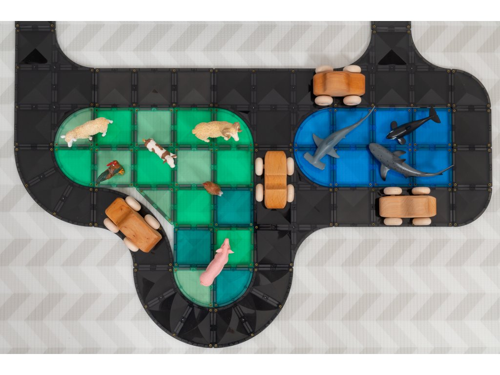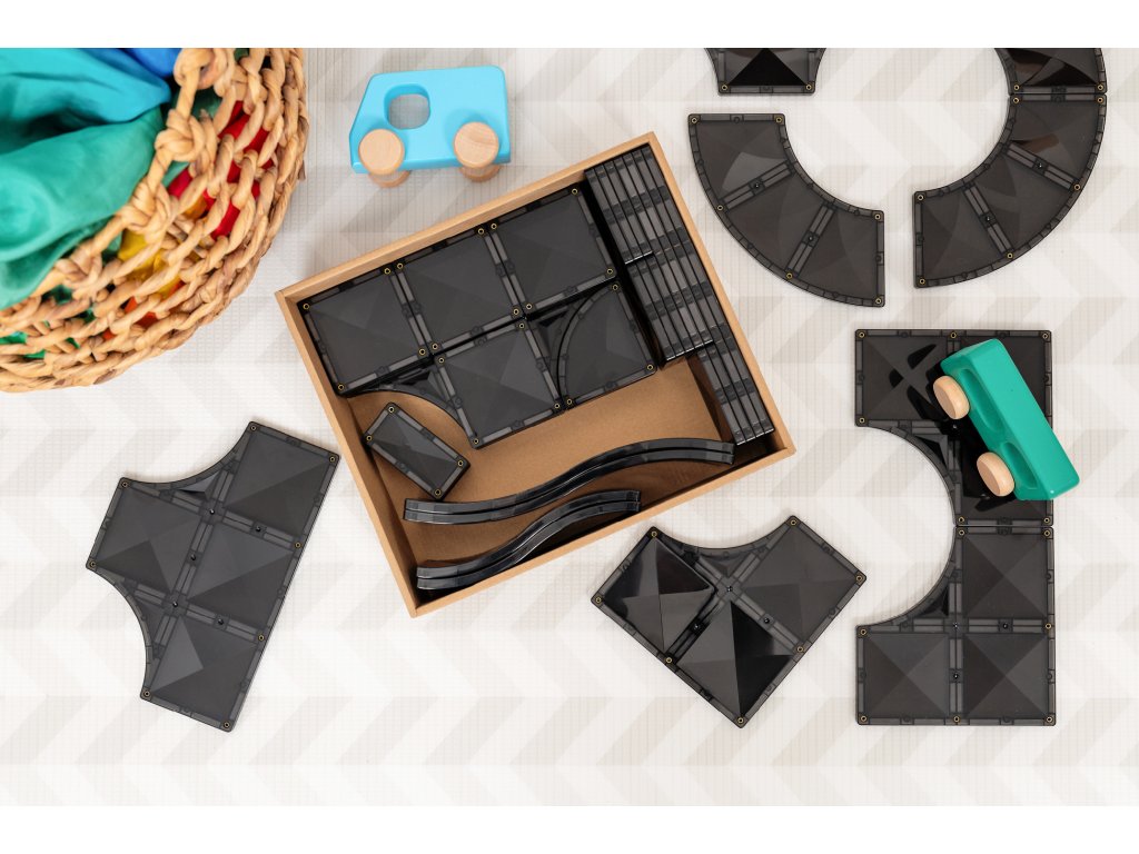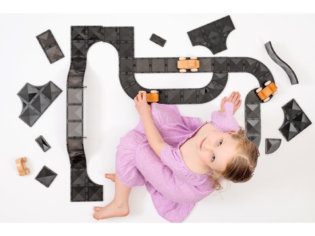 Magnetická stavebnica Connetix Tiles v jedinečnom dizajne, ktorý si zamilujete. V balení nájdete dieliky na stavbu ciest, ktoré sú v čiernej farbe, ako je pri cestách zvykom. Elegantná čierna farba pekne vynikne aj vedľa farebných dielov, s ktorými môžete túto súpravu ľahko kombinovať. Môžete tak postaviť nielen cesty, ale aj celé mestá, letiská, pretekárske dráhy alebo dokonca skatepark. A to nie je všetko. Magnetická stavebnica Connetix Tiles - Roads Creative Pack obsahuje neobvyklé dieliky, ako sú rampy, štvrťkruhy a križovatky, ktoré môžete použiť na ďalšie stavby - napríklad hrady, veže, mosty, bludiská alebo dokonca hádzacie otvory.