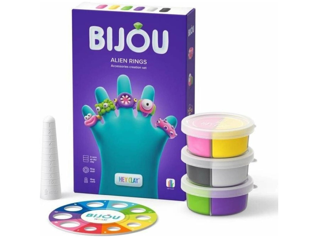 V súprave nájdete 3 nádoby s modelovacou hmotou v 6 farbách. Môžete z nich vytvoriť až 5 originálnych krúžkov. Súprava obsahuje aj prstový meter a nástroje na uľahčenie modelovania. Ak deti nie sú so svojimi výtvormi spokojné, môžete modelovaciu hmotu Hey Clay jednoducho uložiť späť do pohára a modelovať znova. Pri hre si deti precvičujú zručnosť a jemnú motoriku a zároveň rozvíjajú svoju predstavivosť a kreativitu.