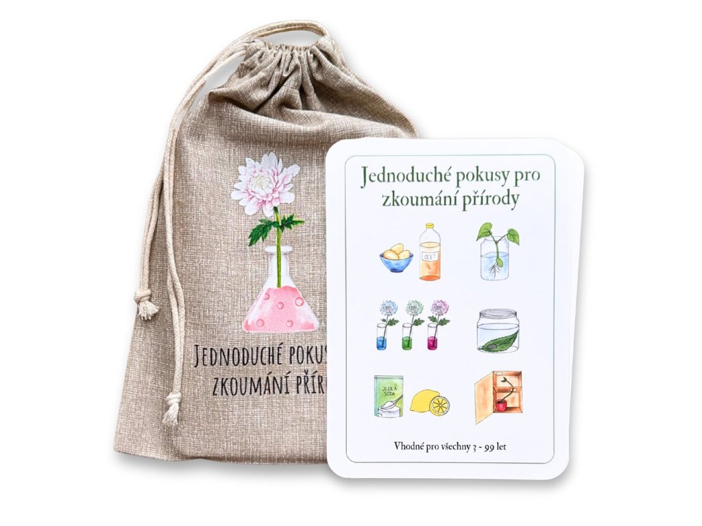 Jednoduché domáce experimenty na skúmanie prírody je súbor 23 experimentov, na ktoré potrebujete len nástroje, ktoré už pravdepodobne máte doma. Nepotrebujete žiadne špeciálne vedomosti, kartičky obsahujú zoznam pomôcok, podrobný postup a vedecké vysvetlenie.Pomocou týchto kartičiek môžete deťom ľahko ukázať, prečo si musia čistiť zuby, umývať ruky, alebo dokonca ako plávajú ryby vo vode či aký je rozdiel medzi hadím a vtáčím vajíčkom.