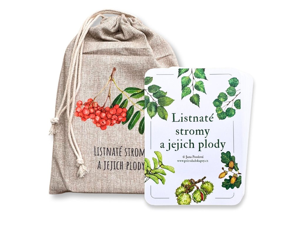 Učebné karty Listnaté stromy majú šikovný dizajn - na prednej strane je len obrázok, takže môžete hádať, ku ktorému stromu patrí. Potom na zadnej strane nájdete názov a opis každého druhu, kde sa dozviete, ako vyzerajú listy, kde strom rastie a mnoho ďalšieho. Kartičky sa dodávajú v praktickom bavlnenom vrecúšku, takže si ich môžete ľahko vziať na cesty bez toho, aby ste ich poškodili. Karty sú vytlačené na kvalitnom papieri s povrchovou lamináciou, aby boli odolnejšie.