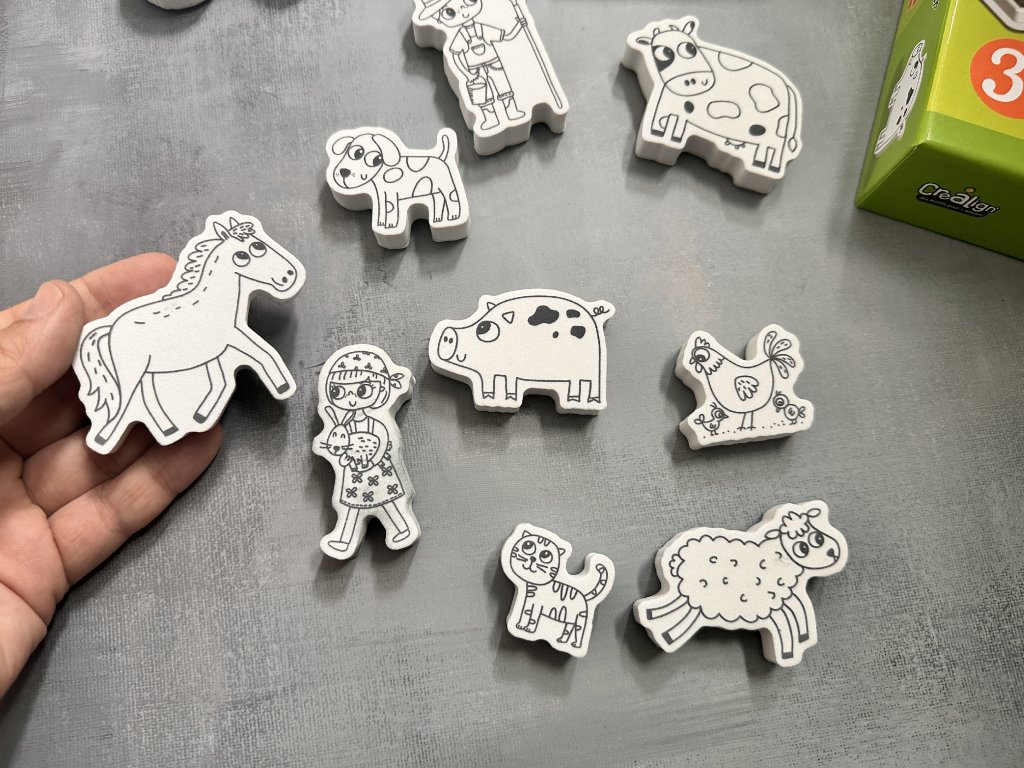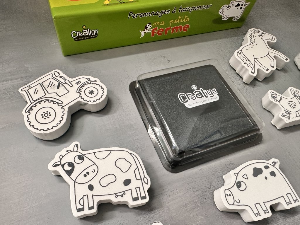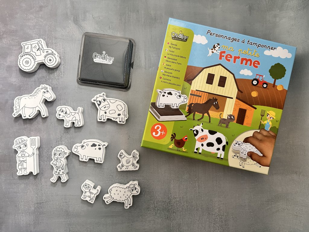 Vytvorte si obrázok plný hospodárskych zvierat a zostavte si vlastné príbehy z farmy. Táto kreatívna sada pre deti od francúzskej značky Crea Lign obsahuje 10 veľkých penových pečiatok so zvieratkami a ďalšími motívmi z farmy. Deti si môžu obrázky vytlačiť a potom ich vyfarbiť alebo ozdobiť ďalšími pastelkami podľa svojej fantázie. Súčasťou balenia je aj poduška na pečiatky s čiernym atramentom. Takže nemusíte nič hľadať a môžete sa rovno pustiť do tvorenia.