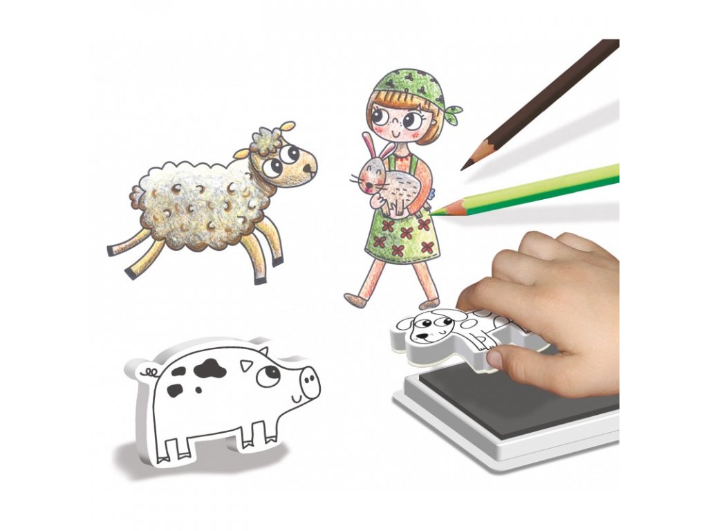 - Sada obsahujúca pečiatky pre deti s motívom zvieratiek z farmy
