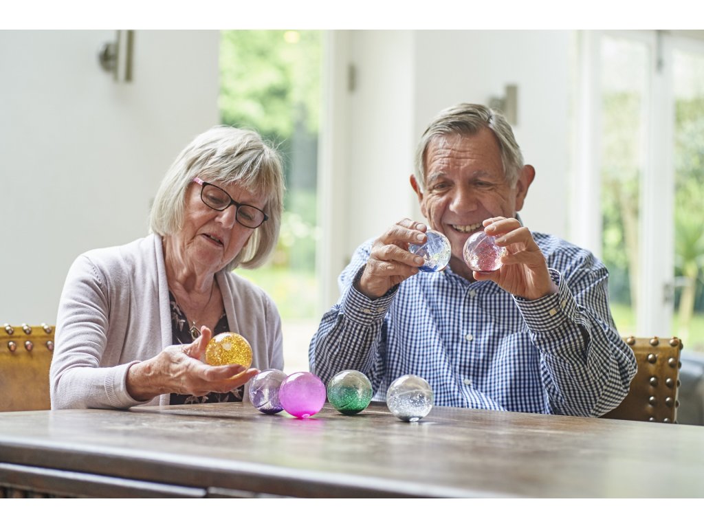 Špeciálne vyvinuté loptičky s trblietavým hviezdnym prachom, vďaka ktorým deti hravým a fascinujúcim spôsobom objavia farebný svet. Prach pri pohybe víri vo vnútri loptičiek a vytvára tak neobyčajné divadlo. Súprava obsahuje farebné loptičky v celkovo 7 farbách. Deti si pri hre rozvíjajú predstavivosť a zmysly. Vhodné pre deti od 1 roka.