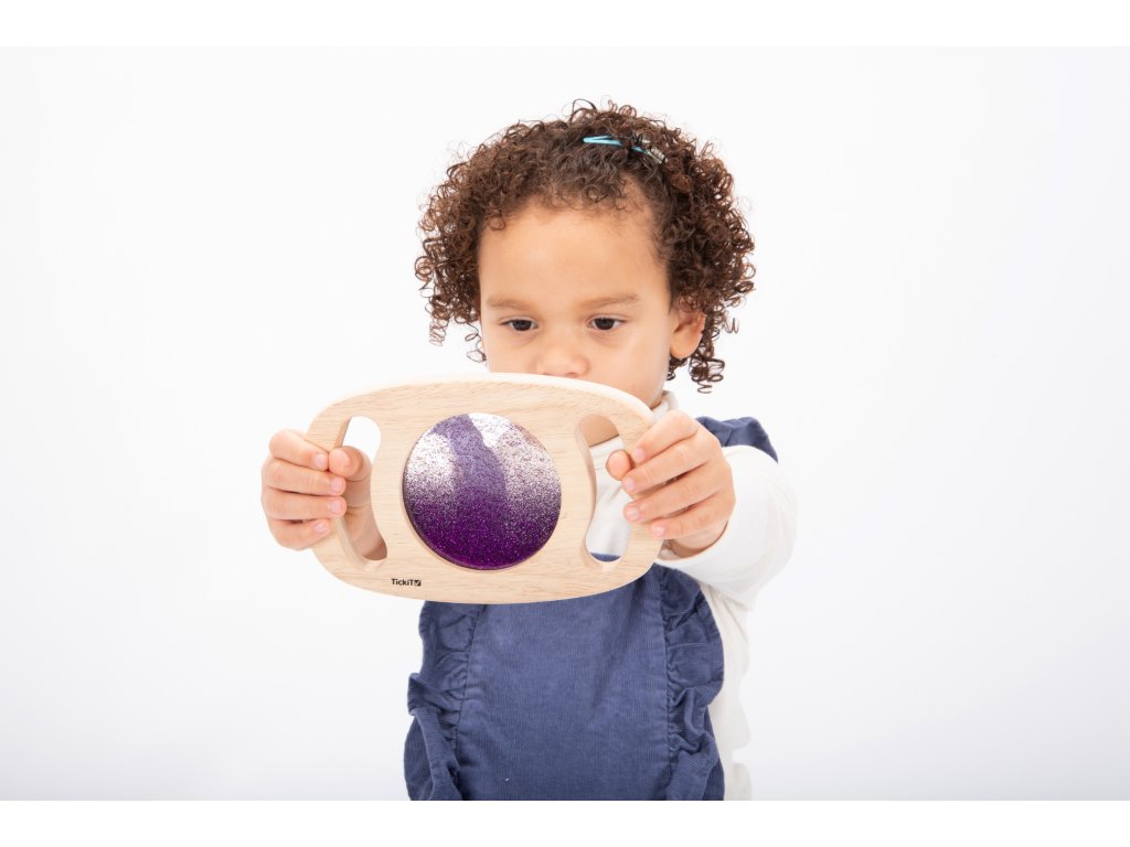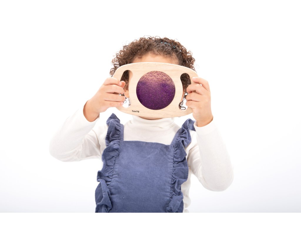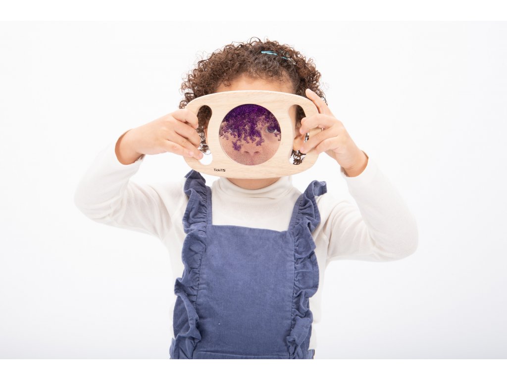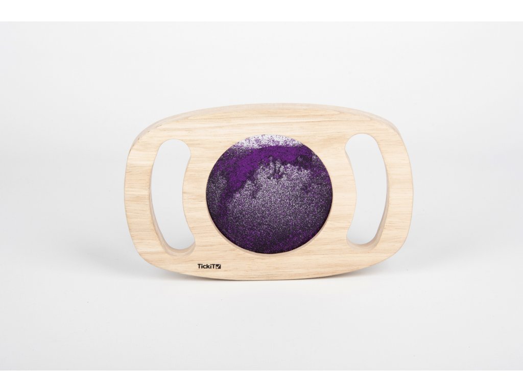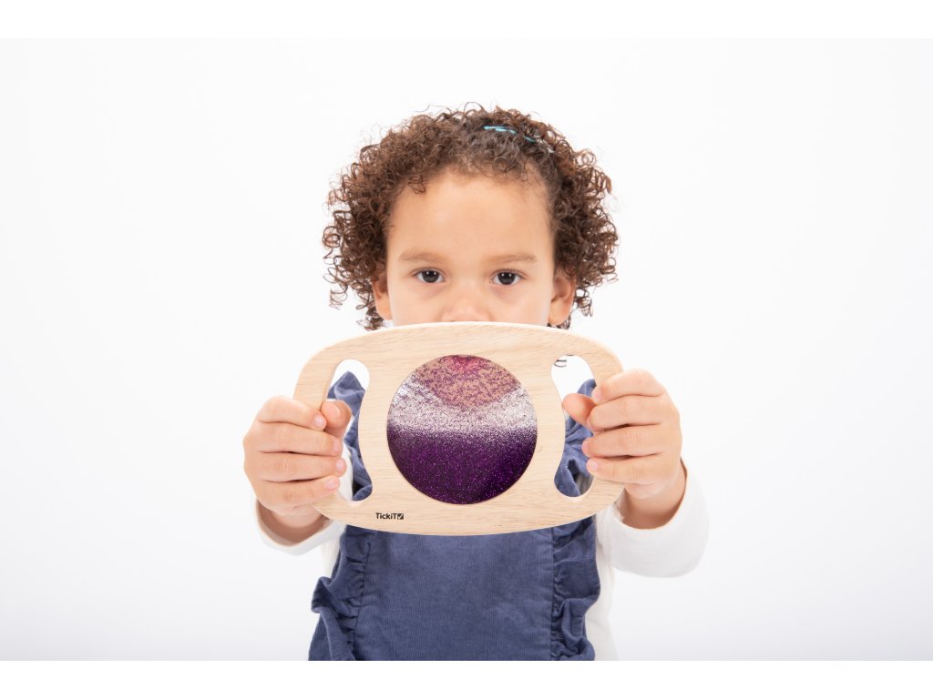 Svetlý panel s rámom z masívneho kaučukového dreva. Vďaka rukoväti sa deťom ľahko drží a otáča. Trblietavá tekutina vo fialovej farbe sa potom pohybuje a deti môžu fascinovane sledovať, ako sa prelieva. Ideálne na rozvoj motoriky, zmyslovú hru a pozorovanie. Okrem zlatej farby máme aj zlatý povrch. Vhodné pre deti od 1 roka.