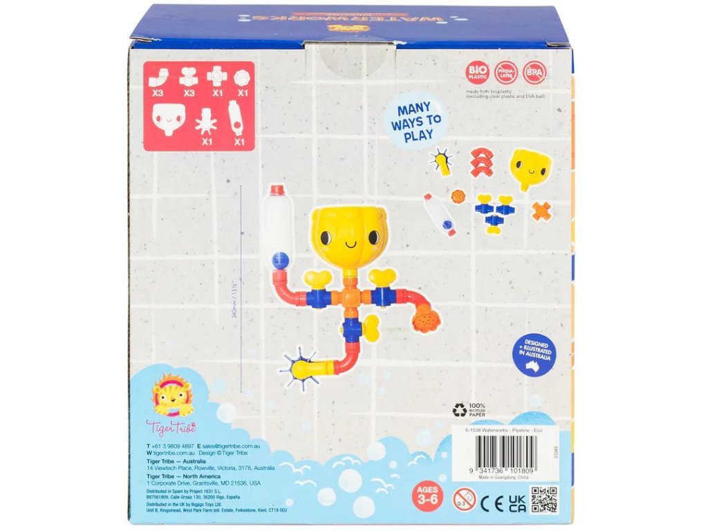 Vodné hrátky, ktoré sa deti zamilujú. Zostavte potrubie a meňte dráhu, ktorou voda potečie.Vďaka konfigurovateľným dielom a špeciálnym ventilom na presmerovanie alebo zastavenie a spustenie toku vody si deti môžu vytvoriť unikátne vodné potrubie. Zvýšite úroveň zábavy pri kúpeli, zatiaľ čo sa deti učia príčinu a následok, rozvíja jemné motorické zručnosti a koordináciu rúk a očí. Vhodné pre deti od 3 rokov.