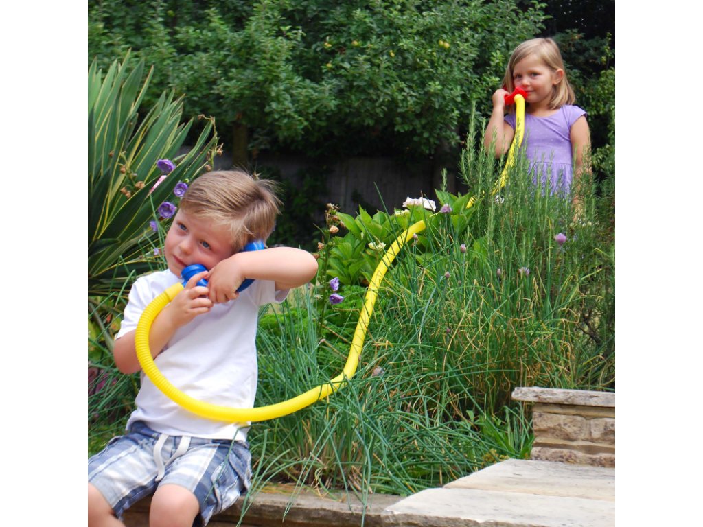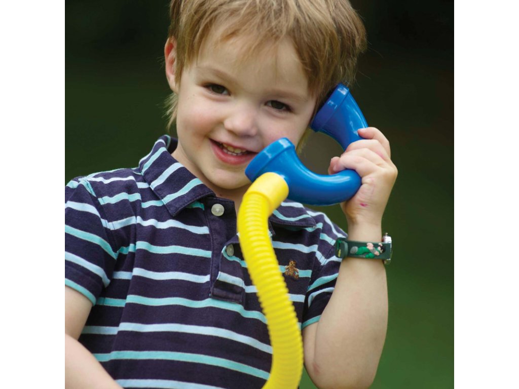 Talking Tubes® (mluvící trubice) je unikátní hračka, kterou využijete v jakémkoli vzdělávacím prostřední, uvnitř i venku. Mluvící trubice přispívá k rozvoji komunikační a sociálních dovedností dětí. Startovací sadu lze použít ke komunikaci na krátkou vzdálenost i mezi místnostmi. V sadě najdete 2 sluchátka a 3 metry pevné žluté trubice, která se dá ohýbat. Sluchátka stačí zasunout do konců trubice a zábava začíná! Talking Tubes® má patentovaný design a děti zabaví na dlouhé hodiny. Vhodné od 3 let.