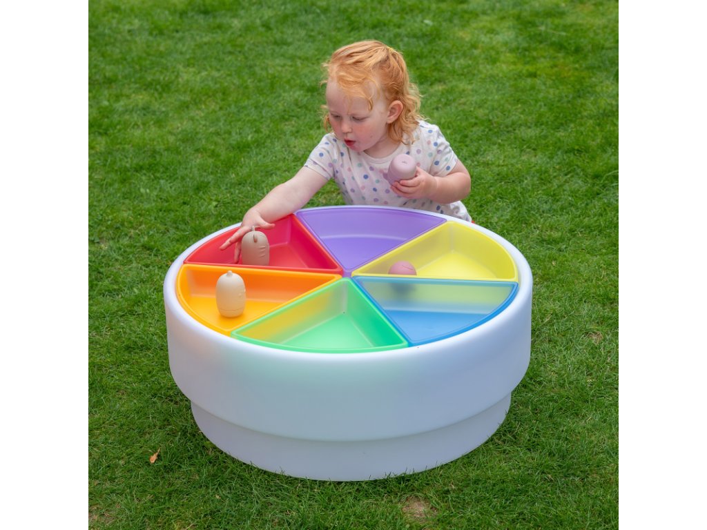 Odolné provedení umožňuje použití v interiéru i venku. Misky lze snadno přenášet, ukládat na sebe a kombinovat s dalšími smyslovými nebo vzdělávacími pomůckami. Jsou praktickým základem pro otevřenou hru, která roste spolu s dítětem. Misky navíc přesně padnou do kulatého světelného stolu TickiT, a to klasického i nízkého.