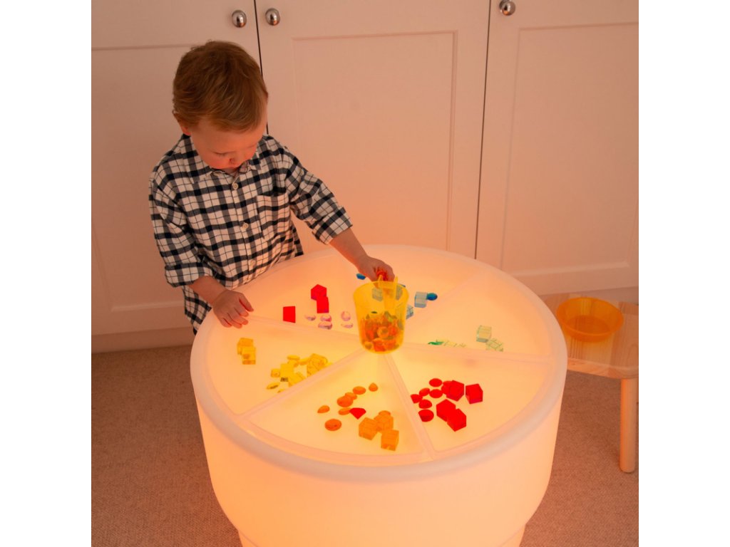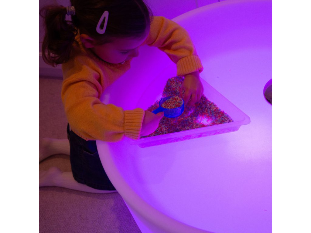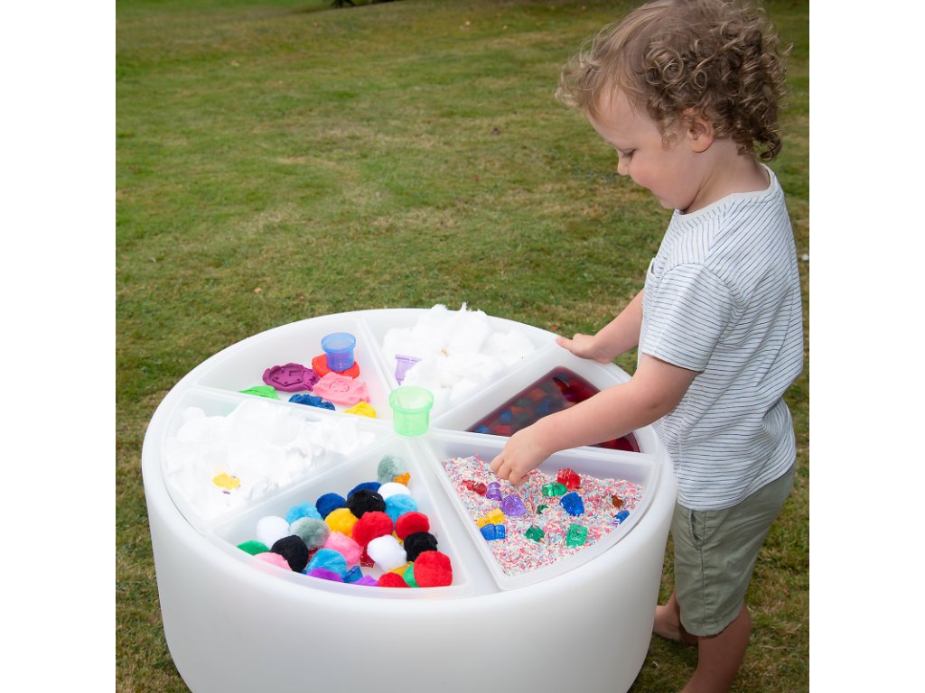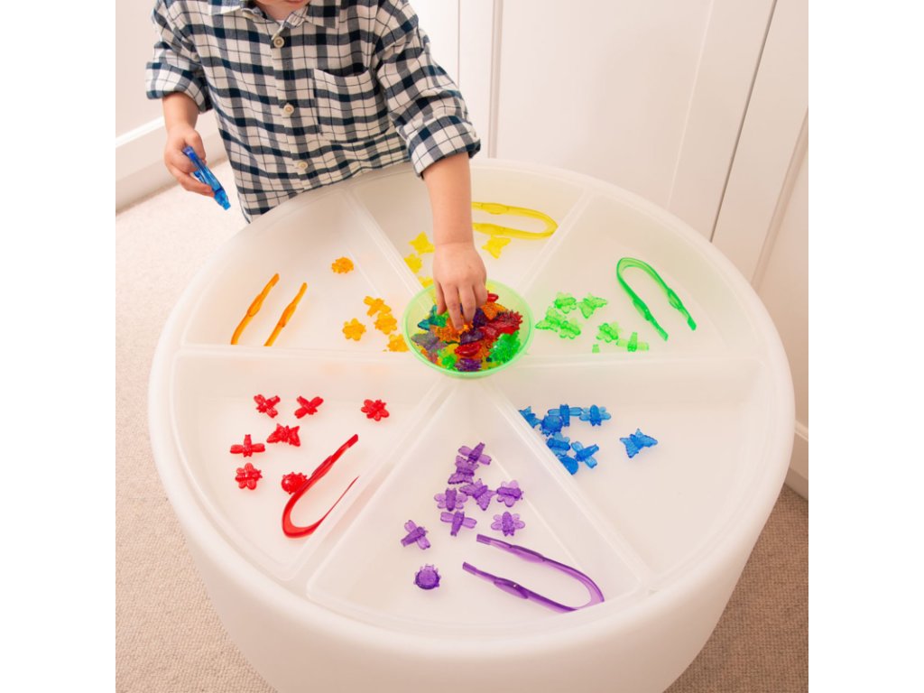 Odolné provedení umožňuje použití v interiéru i venku. Misky lze snadno přenášet, ukládat na sebe a kombinovat s dalšími smyslovými nebo vzdělávacími pomůckami. Jsou praktickým základem pro otevřenou hru, která roste spolu s dítětem. Misky navíc přesně padnou do kulatého světelného stolu TickiT, a to klasického i nízkého.