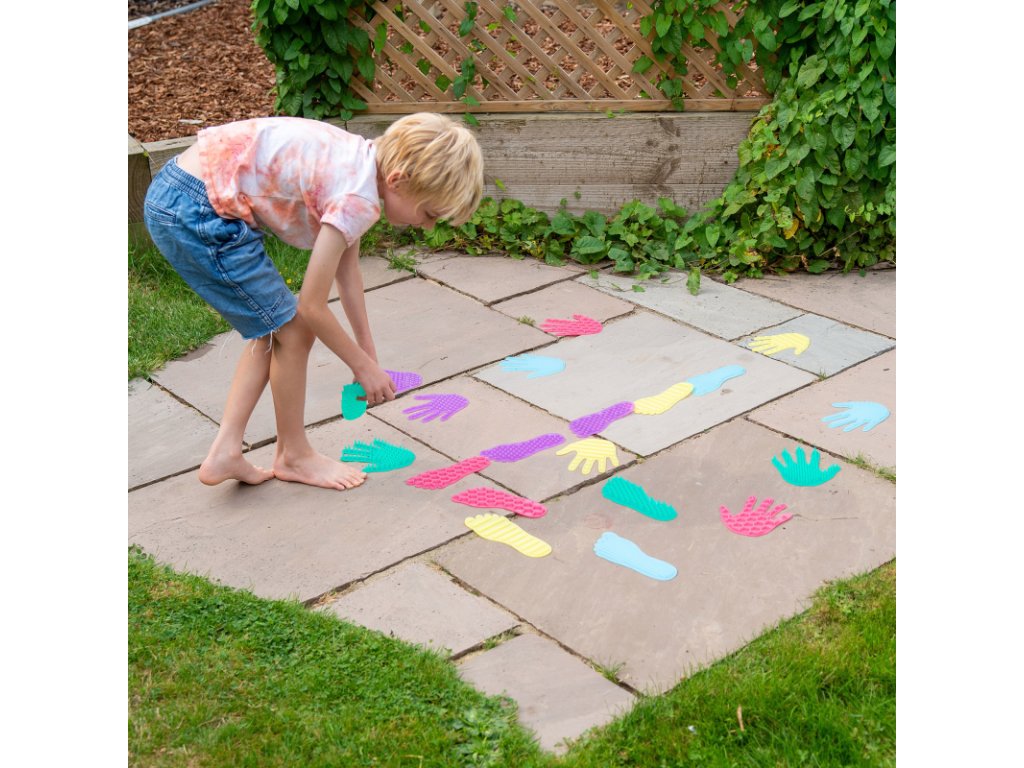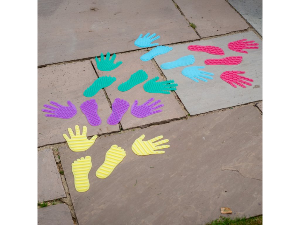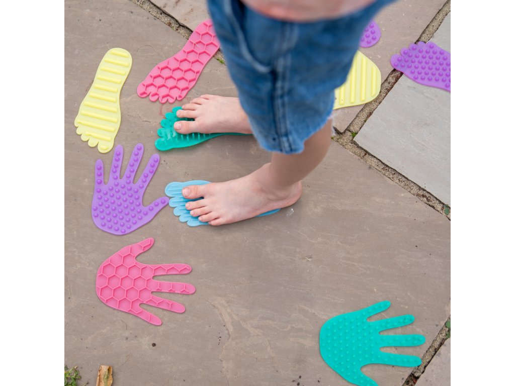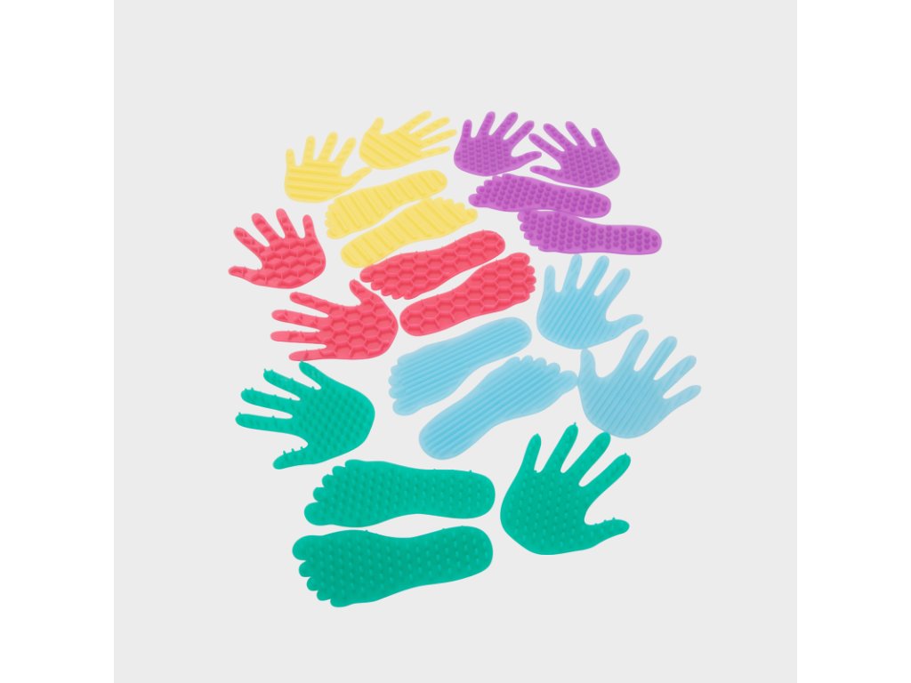 Smyslová sada silikonových tvarů ve tvaru rukou a nohou, která přináší dětem pohyb, dotek a zábavu v jednom. Každý pár rukou a nohou má vlastní strukturu povrchu, kterou mohou děti objevovat hmatem, porovnávat a popisovat. Měkký silikon je příjemný na dotek, pružný a zároveň dostatečně pevný pro každodenní hraní doma i ve školce.
