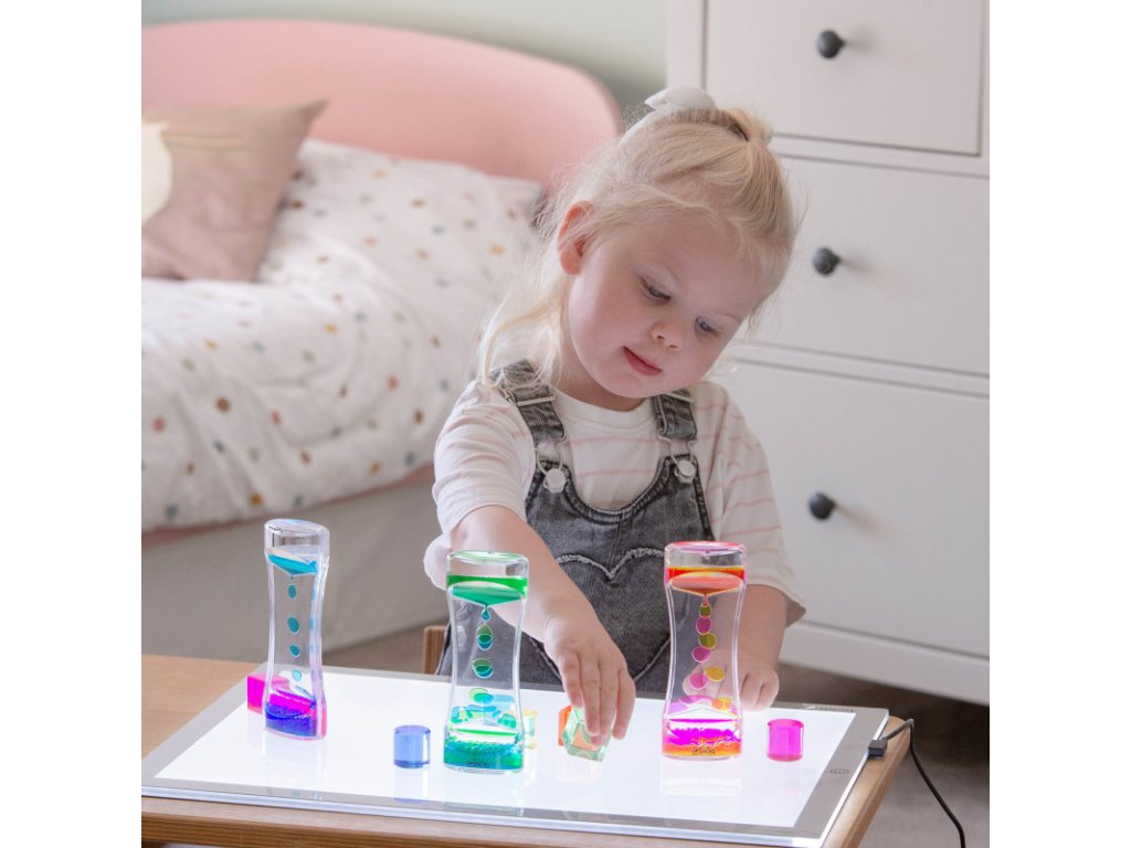 Senzorické válce podporují dětskou zvídavost a rozvíjejí jazyk i představivost. Přirozenou formou seznamují děti se základními principy – jako je hustota kapalin, gravitace nebo plynutí času. Jsou vhodné jak pro domácí prostředí, tak pro školky, herny či terapeutické místnosti. Díky pevnému polykarbonátovému obalu jsou odolné a bezpečné pro dětské ruce. Vhodné od 3 let.