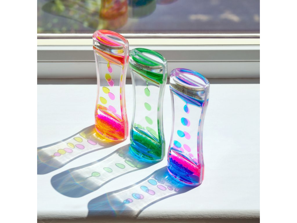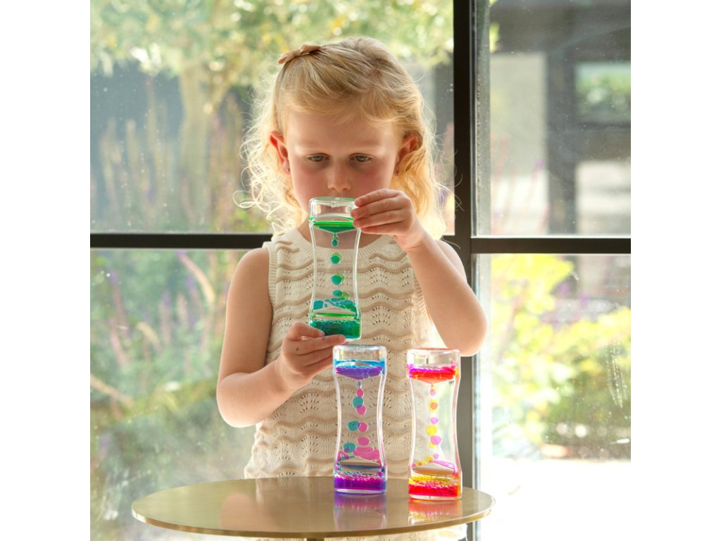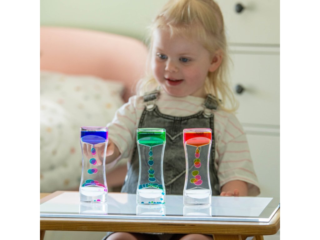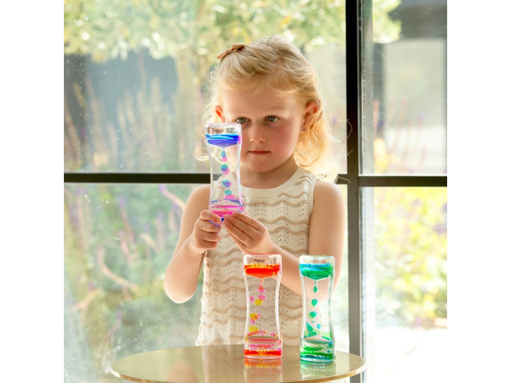 Tyto smyslové tekutinové válce zaujmou děti na první pohled a přirozeně je vtáhnou do klidného pozorování. Při otočení se dvě barevné tekutiny pomalu prolínají a vytvářejí plynulé, uklidňující proudy. Děti mohou sledovat pohyb barev, vnímat změny tempa a soustředit se na přítomný okamžik. Pomůcka je ideální pro chvíle zklidnění, tichou hru i společné objevování.